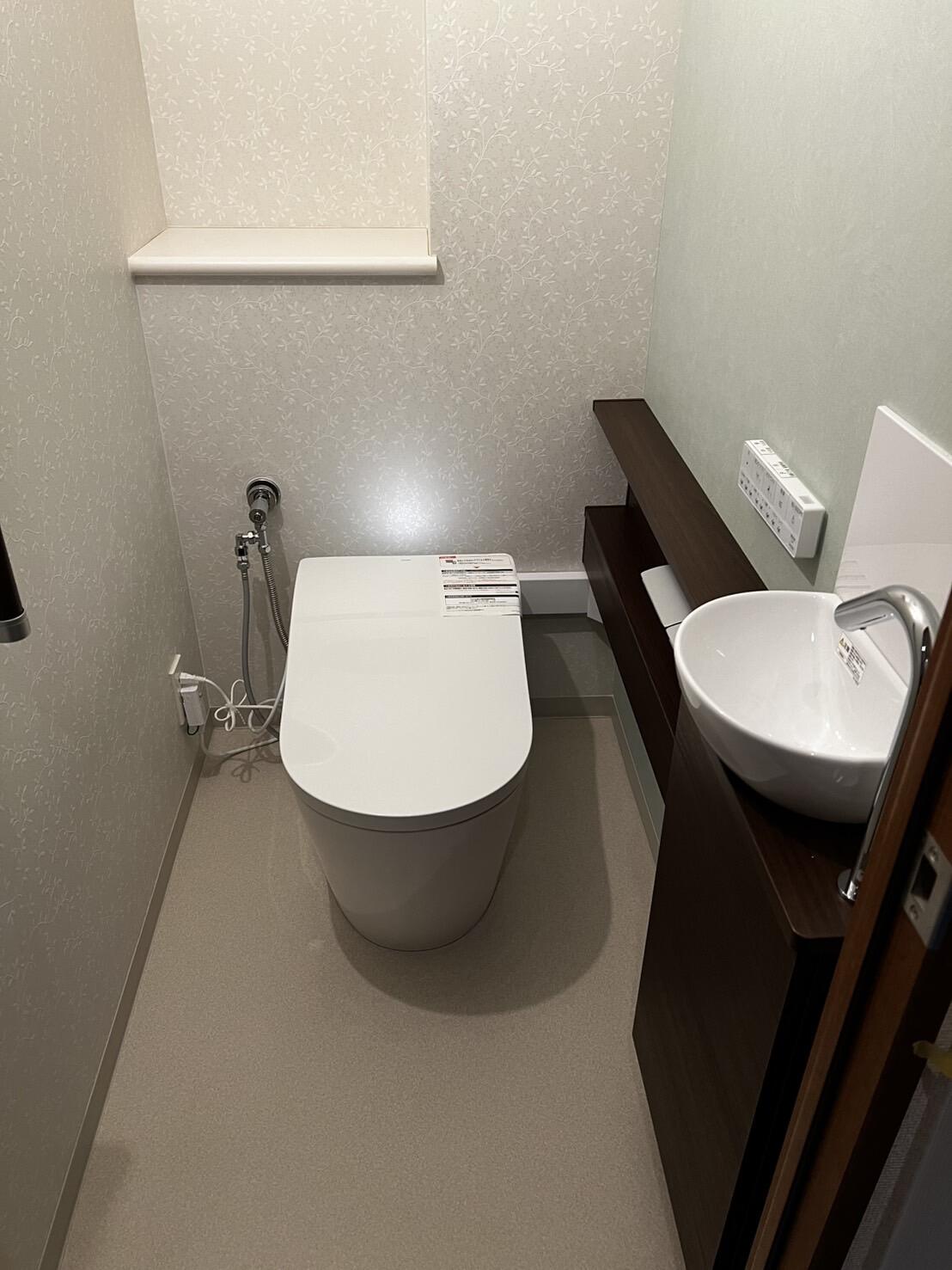 トイレに独立手洗い器を設けることで空間の印象はぐっと洗練され、視覚的にもすっきりとした印象になりました!