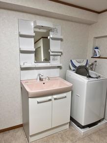 白を基調とした明るい洗面所に(ピアラ)