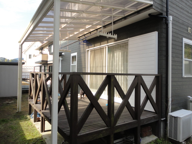 屋根つきのウッドデッキを、サンルームデッキにリフォームしました。これで洗濯物も雨にぬれず、花粉も飛んでこないので安心です。