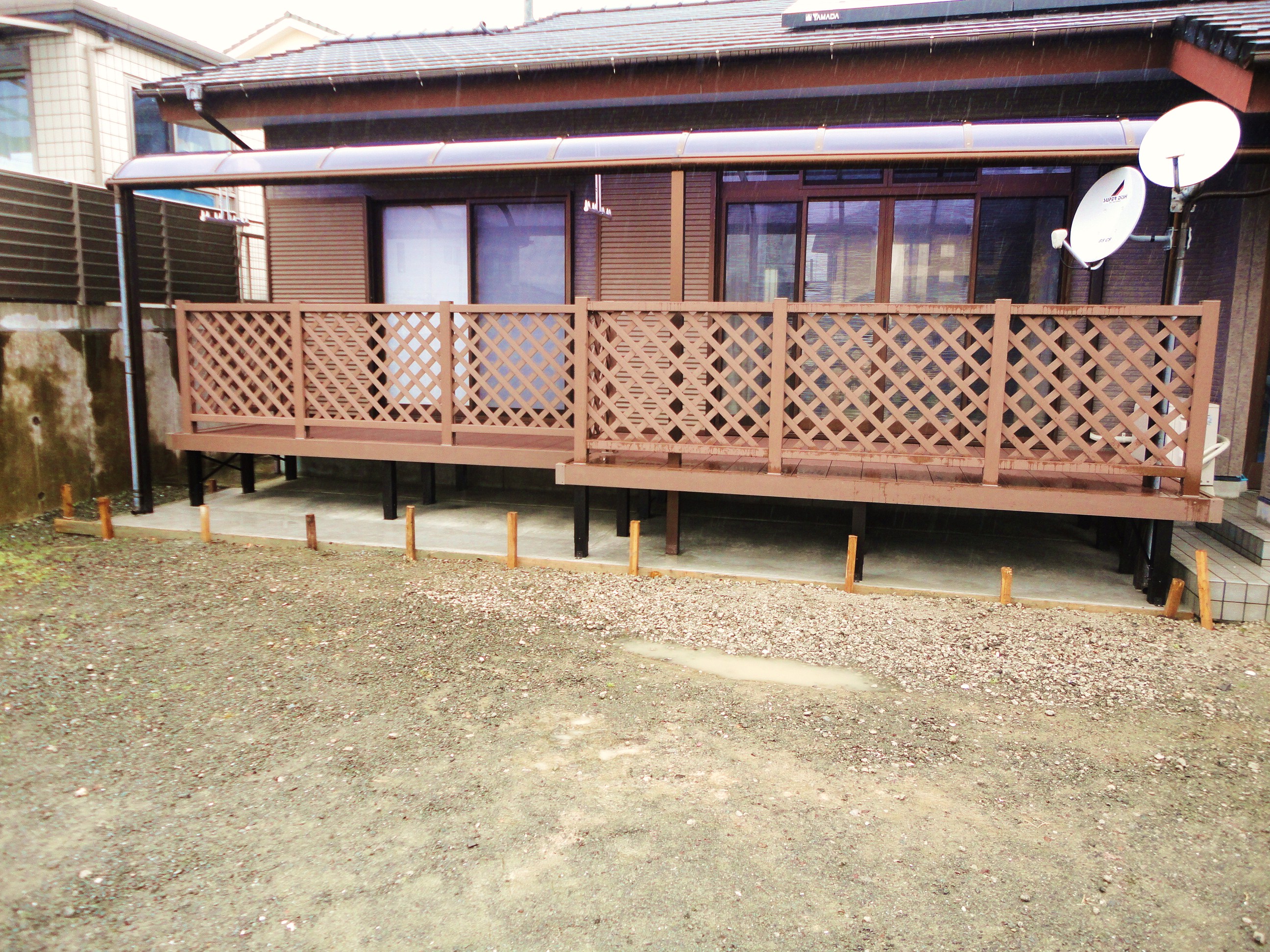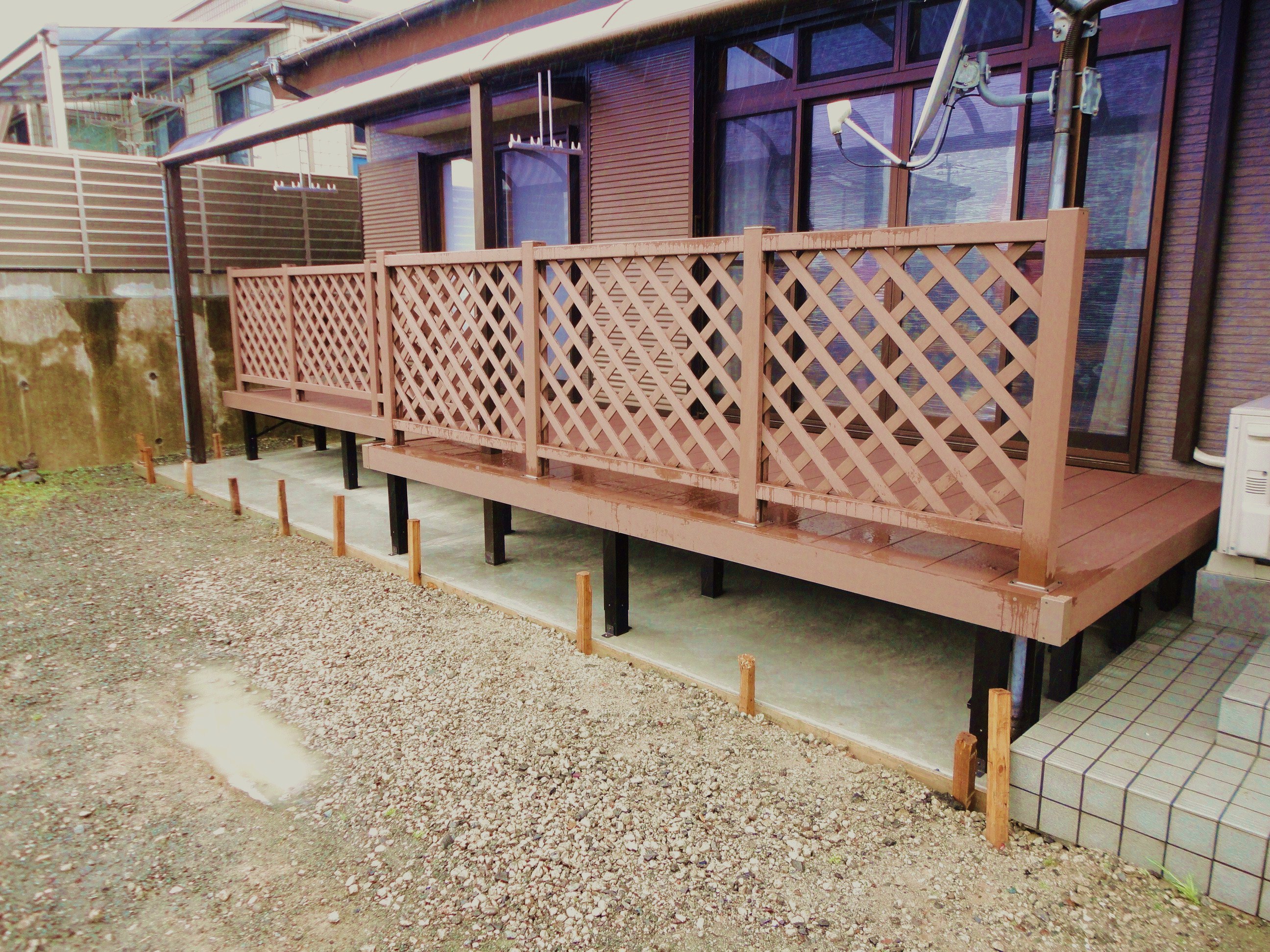 リウッドデッキを設置しました!リウッドとは、木粉とプラスチックを主原料とした、天然木特有の温かみを生かした新素材です。腐れにくく水はけも良いので、お手入れが簡単で耐久性に優れています。子供やペットにも安心です。