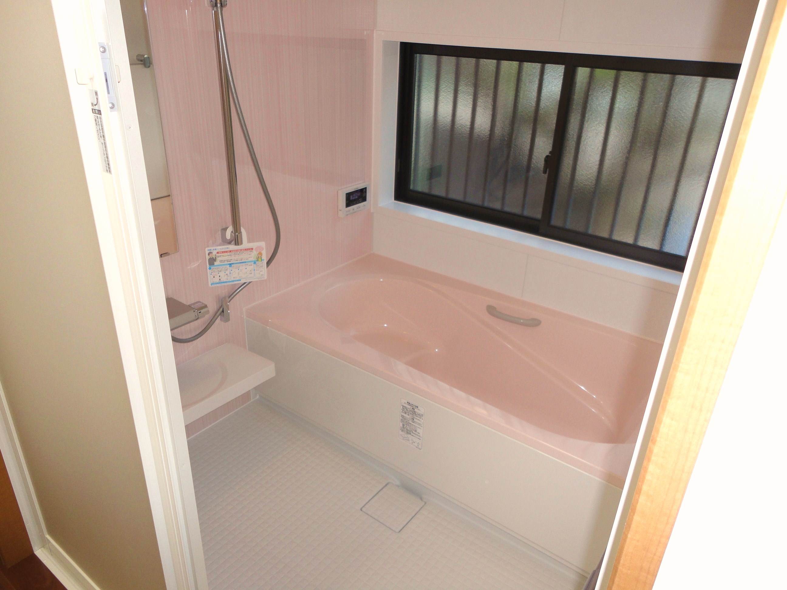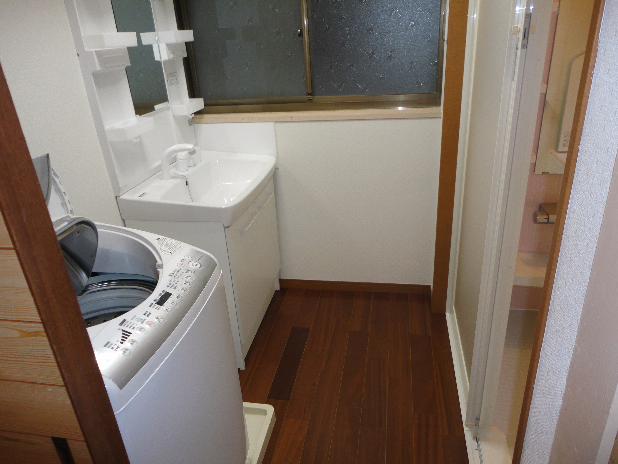 洗面所と浴室をリフォームしました。浴槽はLIXILの新商品、キレイユです。くるりんポイ排水口なので、渦の力で排水口を綺麗にしてくれます。床はキレイサーモフロアで、汚れが付きにくく落としやすいのでお掃除がラクラク。