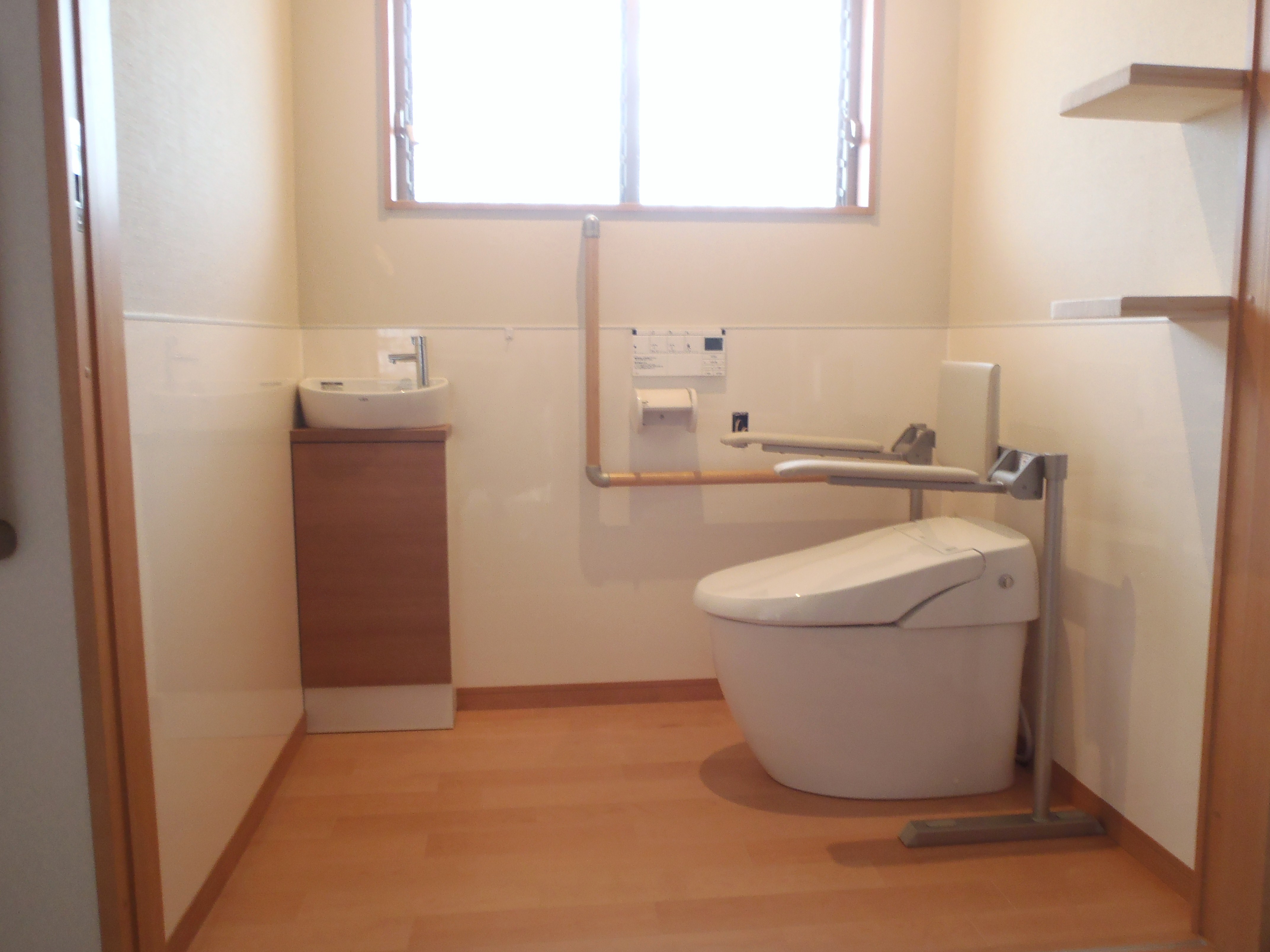 おばあちゃんのお家のトイレをリフォームしました。車いすでは中まで入れませんでしたが、ドアを広くしたのでラクラク入れるようになりました。タンクレストイレのサティスを採用したことで、さらに広々とした空間へと生まれ変わりました。