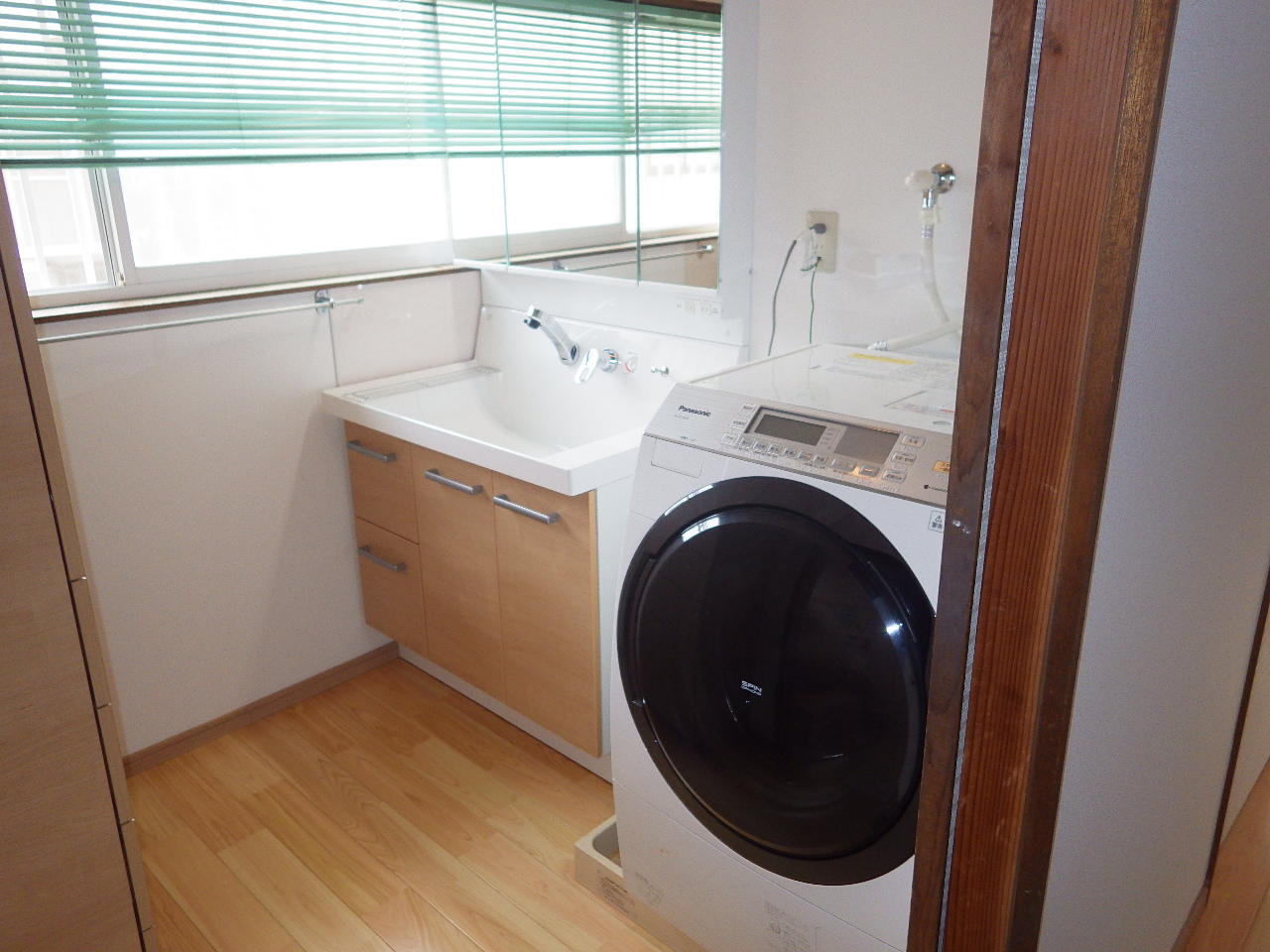 洗面化粧台を入れ替え、床やクロスの張り替えを行いました。床と洗面化粧台の扉の色味を揃えたことで、統一感のある明るい洗面化粧室になりました。