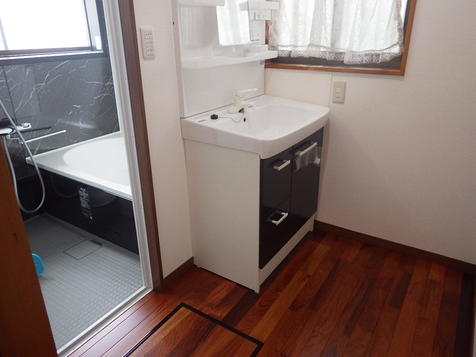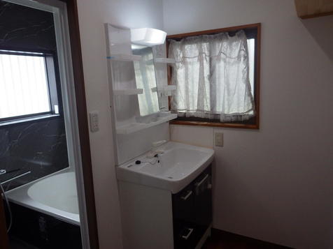 洗面脱衣所のリフォームです。 狭い場所だったので、洗濯機はリフォームした階段下収納へ移動。 洗面化粧台だけになった脱衣所は明るく、広く使えるようになりました。
