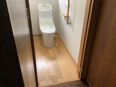 トイレ器具の交換、壁・床・天井の貼替を行いました。 トイレ内を仕切るために昔はドアがついていたため、その部分が邪魔になっていましたが、今回のリフォームで撤去し広々と使えるように。 また、窓も交換し断熱性もアップ。 トイレを気持ちよく使える事ができそうです。
