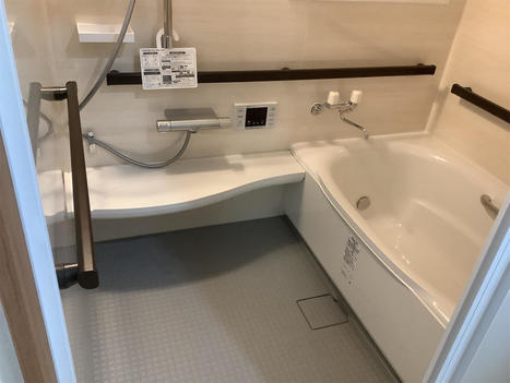 お風呂・洗面化粧室のリフォームを行いました。 お風呂の洗い場は、施工の工夫で以前のお風呂より洗い場が広くなり使いやすくなり、手すりをぐるっと設置することで (サポートパックオプション)安心してお風呂に入ることができそうです。 また、お風呂のリフォームと合わせて窓を取り替えることにより、より断熱性のがアップ。冬場に優しいお風呂となりました。