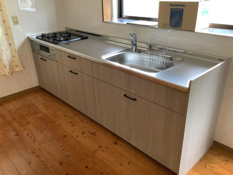 中古住宅を購入しリフォームされたお客様。中古住宅の状態がとてもよかったので、お客様の暮らしに合わせた必要最低限のリフォームをしました。 キッチンは開き戸タイプを引き出しタイプにしたことでより使いやすく、奥の物も取り出しやすくなりました。 コーキングは人により仕上がりが変わってきますが、、、さすが職人さん! 見事な仕上がりでした。