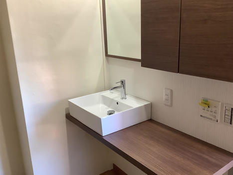 洗面台とトイレ、それぞれ狭いスペースだったので2つのスペースをトイレへリフォーム。