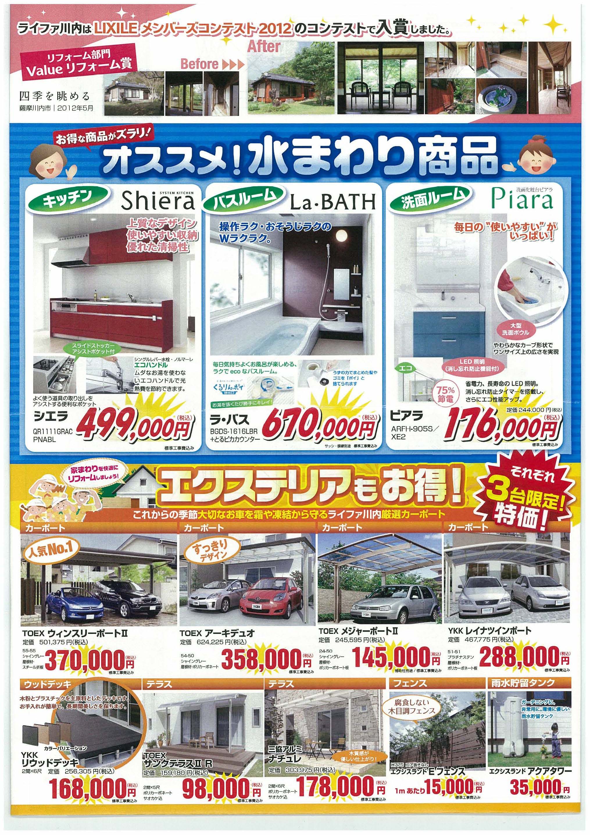 トイレの他にも水回り商品、エクステリア商品などお安くなっております。