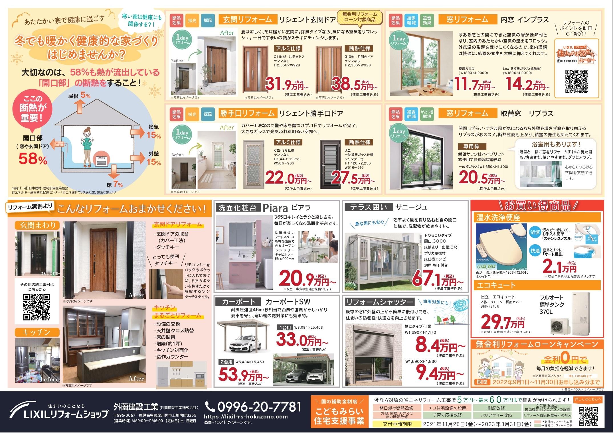 寒くなる前の過ごしやすい今の季節に、寒さ対策のリフォームを考えてみませんか?