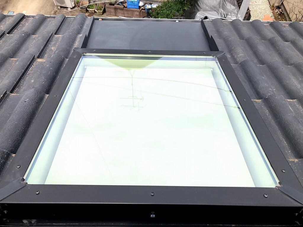 昨年の台風でトップライトから雨漏りをしてしまいました。 台風以前も何度か雨漏りがあり、その都度メンテナンスをしていましたが思い切って交換をしました。 以前は網入ガラスでしたが今回は遮熱PGへ変更、スクリーンを追加で取り付けました。 工事期間中も何度か雨の日がありましたが雨漏りせず無事終了致しました。