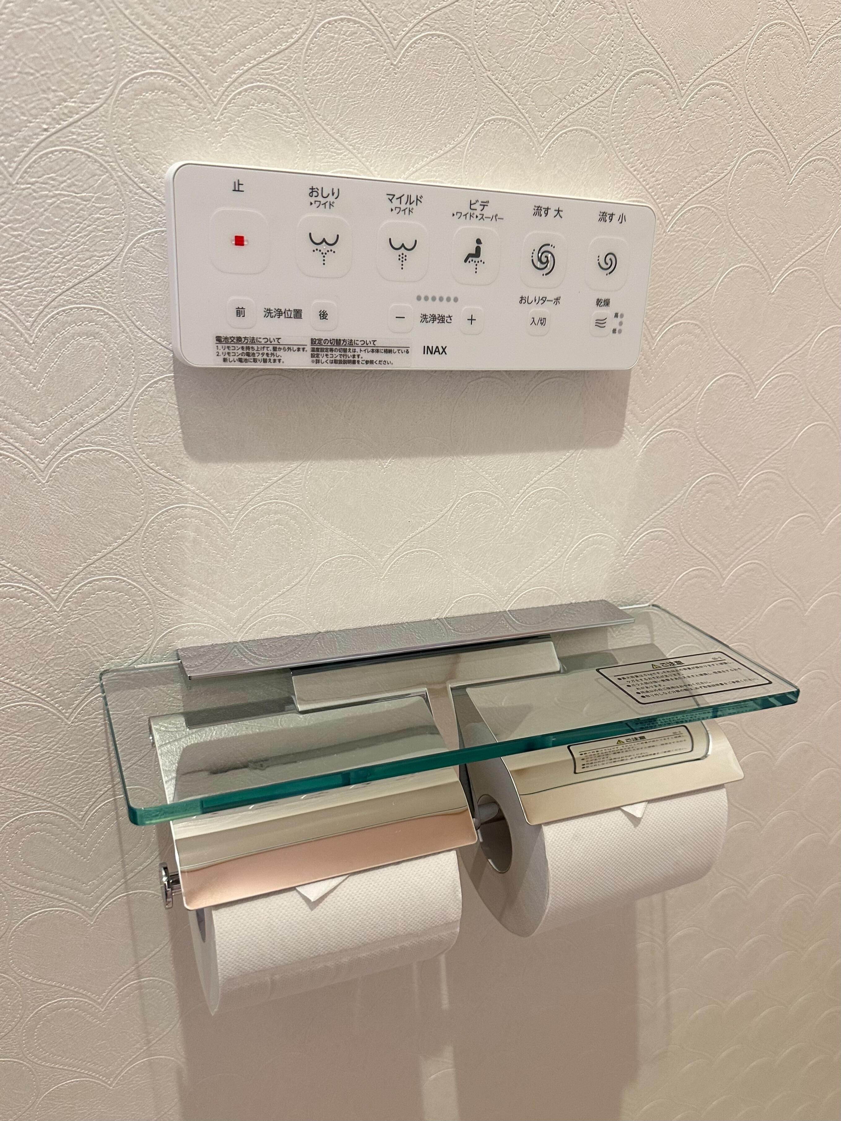 ペーパーホルダーは、KAWAJUN カワジュン ガラス棚付ダブルペーパーホルダー に。