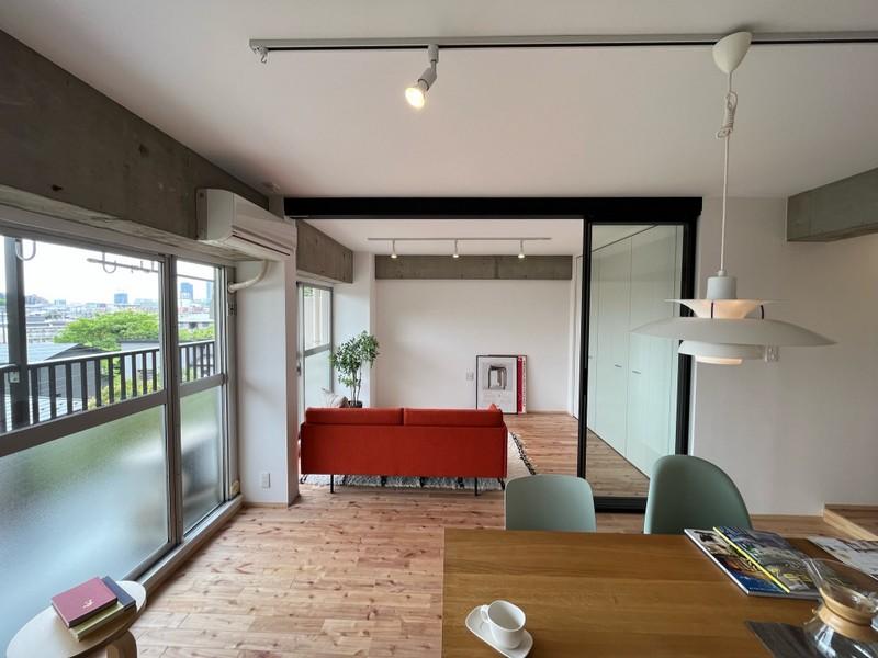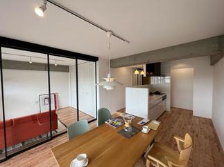 細かく区切られた壁を取り払い、広くて明るい開放感のあるLDKにリフォーム。 水回りも最新の設備機器にリフォームを行う。