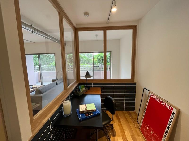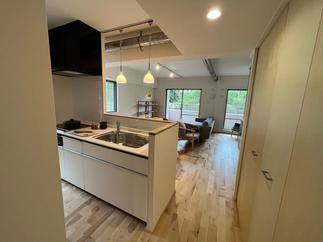 閉鎖的で暗いリビングやキッチンを、明るく開放的なLDKにリノベーションしました。 リビングの一角に、広くはありませんが、明るい書斎を設けました。 水回りも、リフォームしました。