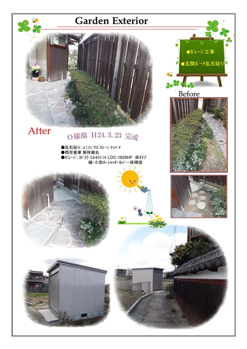主なリフォーム内容 : 玄関ポーチ乱石貼り工事 / ガレージ工事