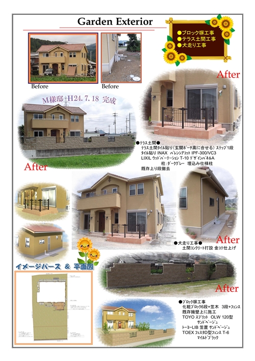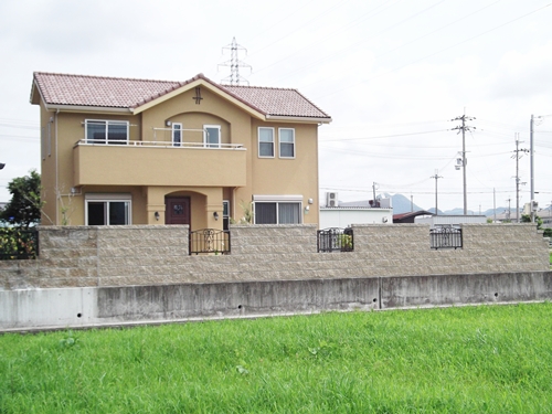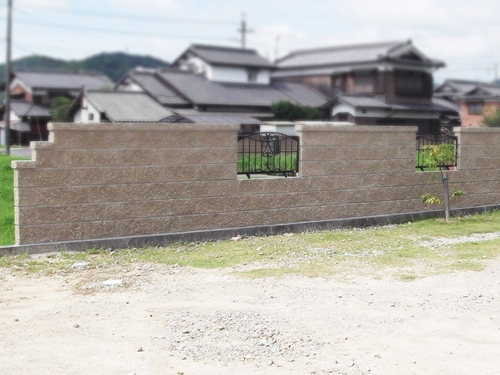 化粧ブロック6段積+笠木 化粧ブロック3段積+フェンス