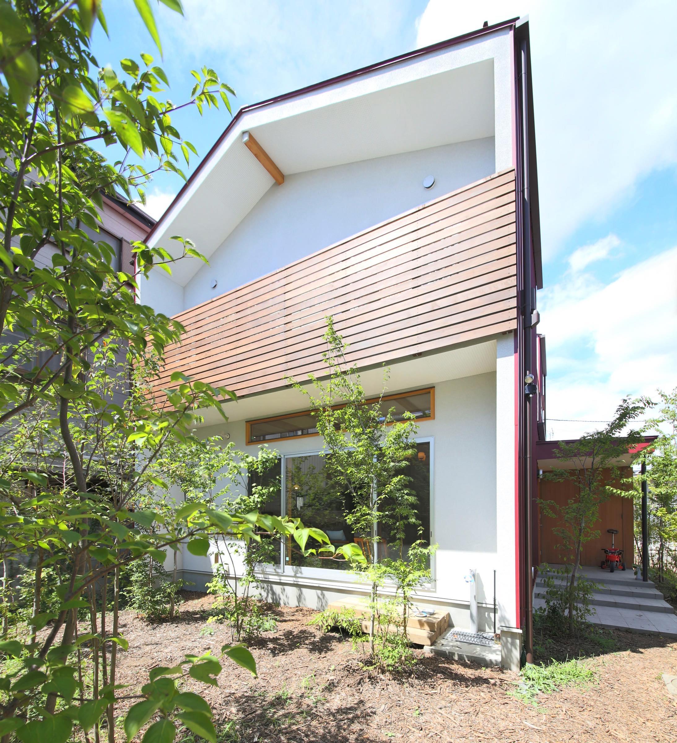 バルコニーのレッドシダーの手摺もアクセントになっています。