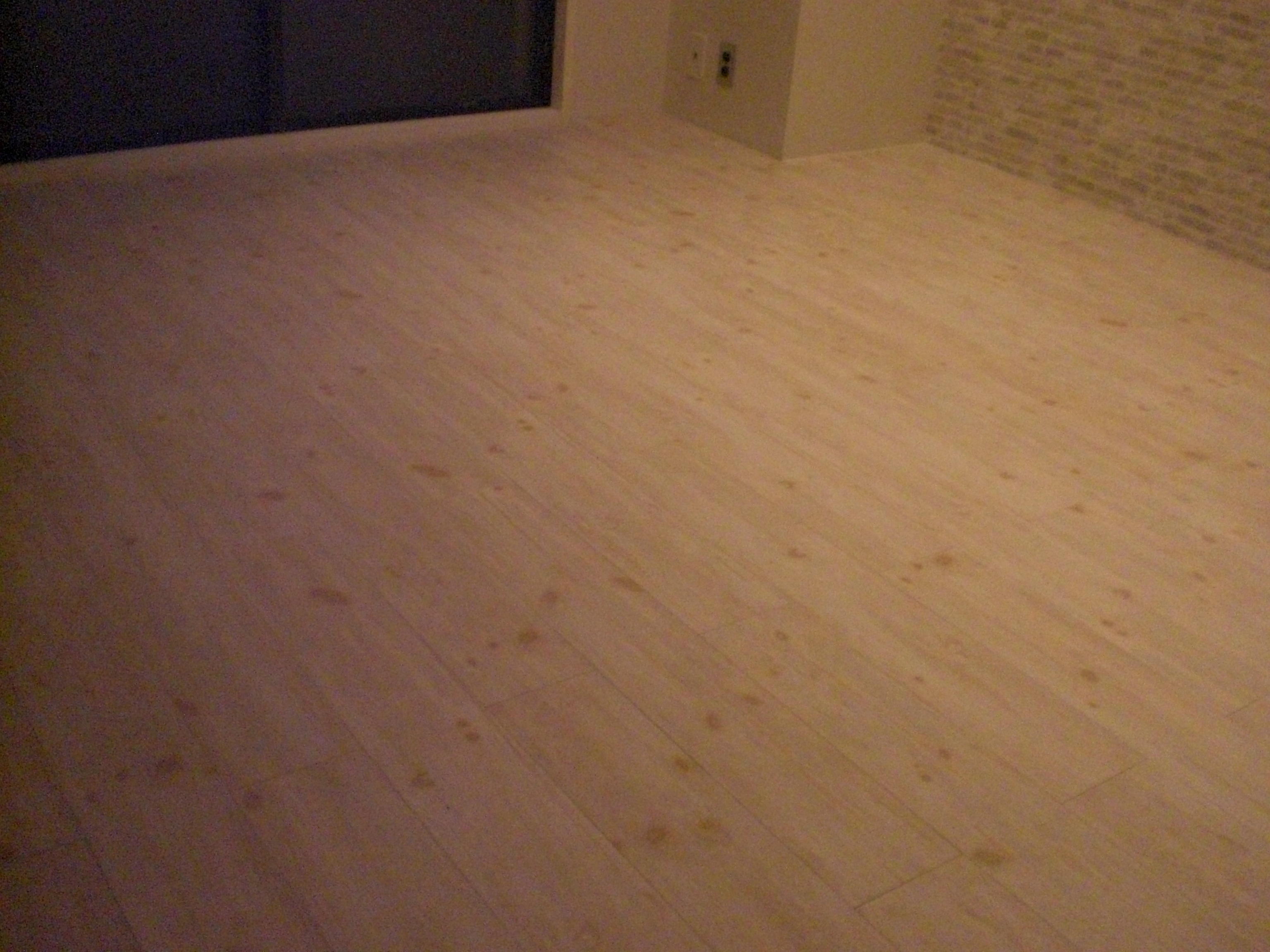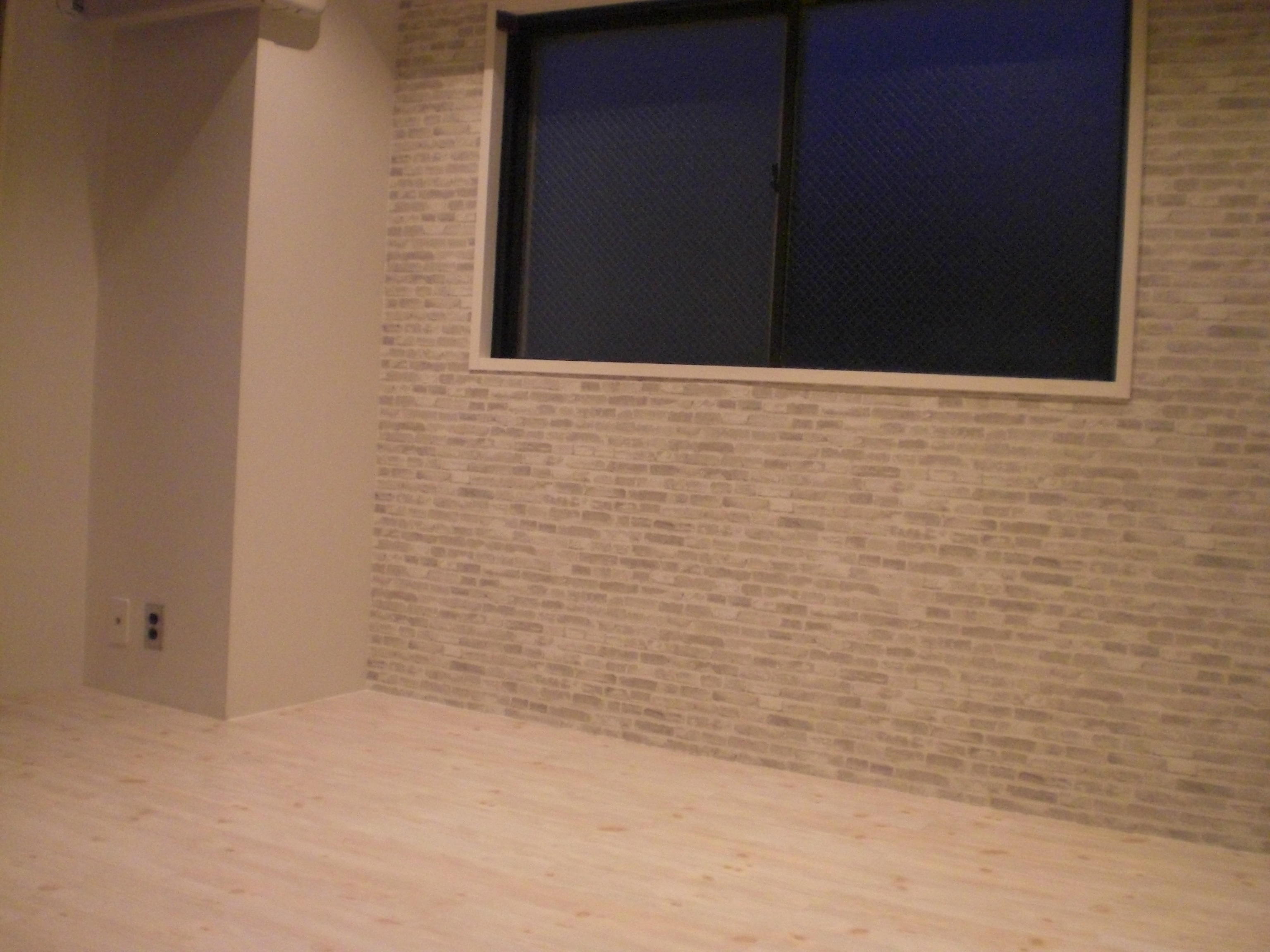 床はフロアタイルを張ってクロスはアクセントにレンガ調です。