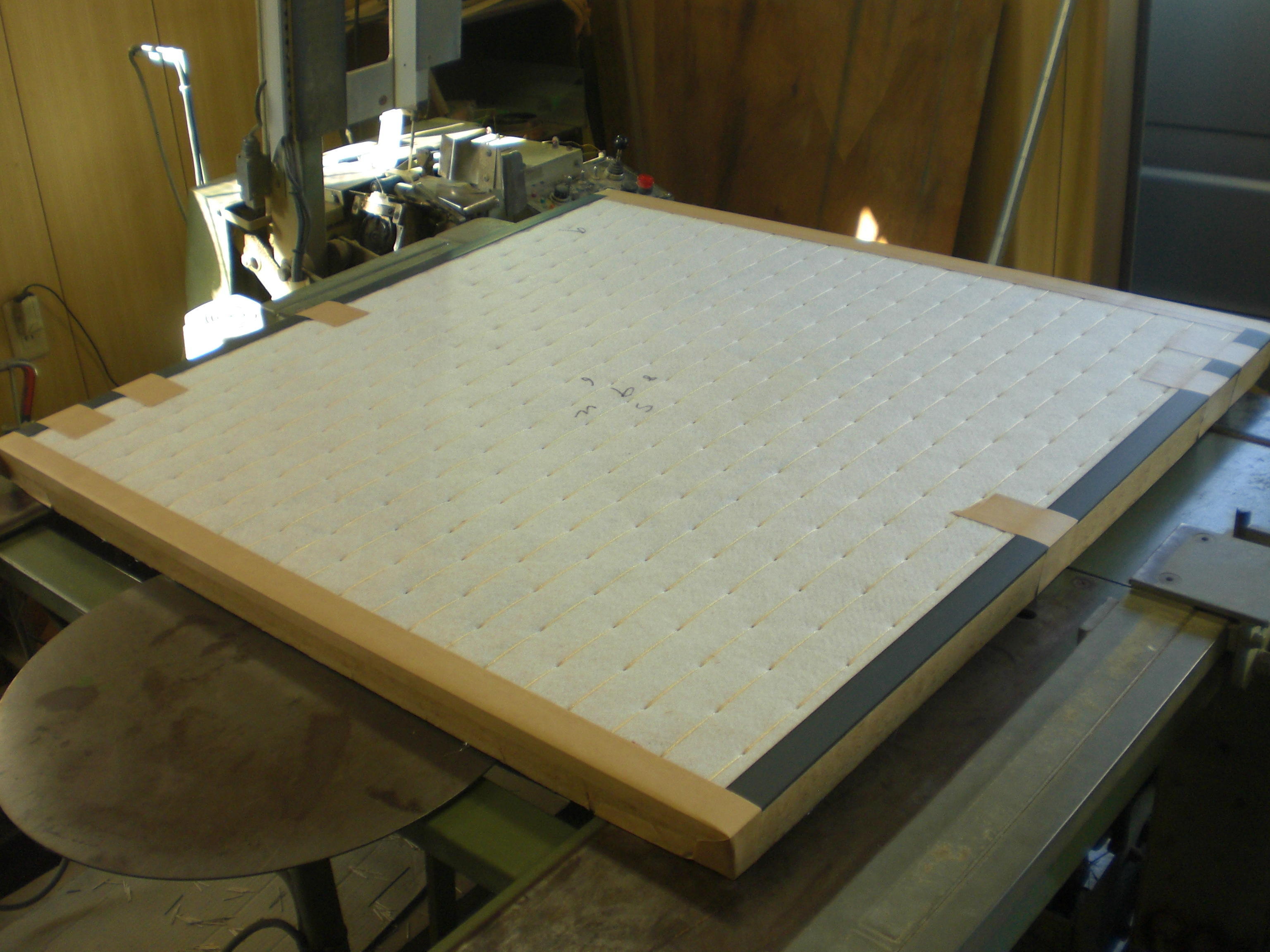 機械で圧縮したり引っ張ったりして縫っていきます。