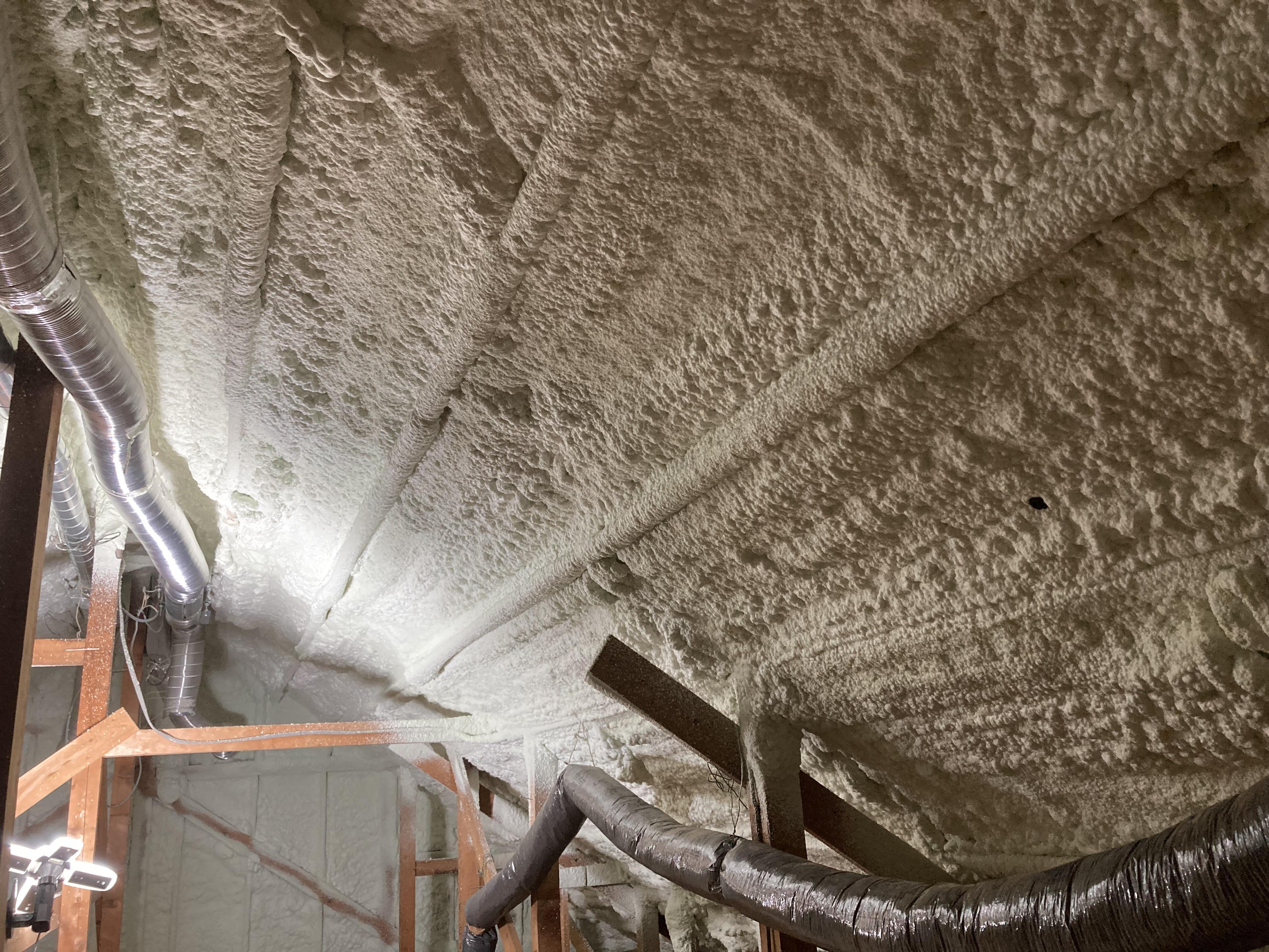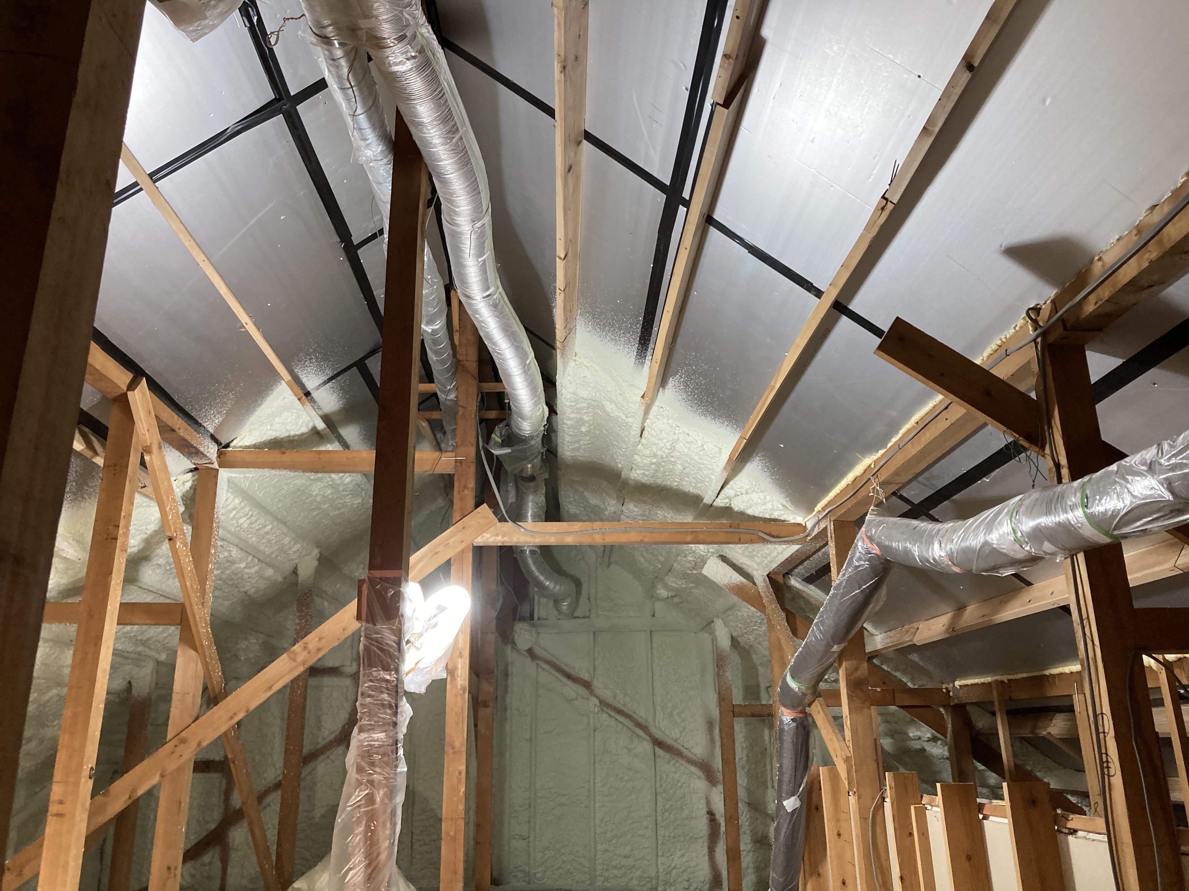 小屋裏にアクアフォーム(断熱材)を吹き付けました。