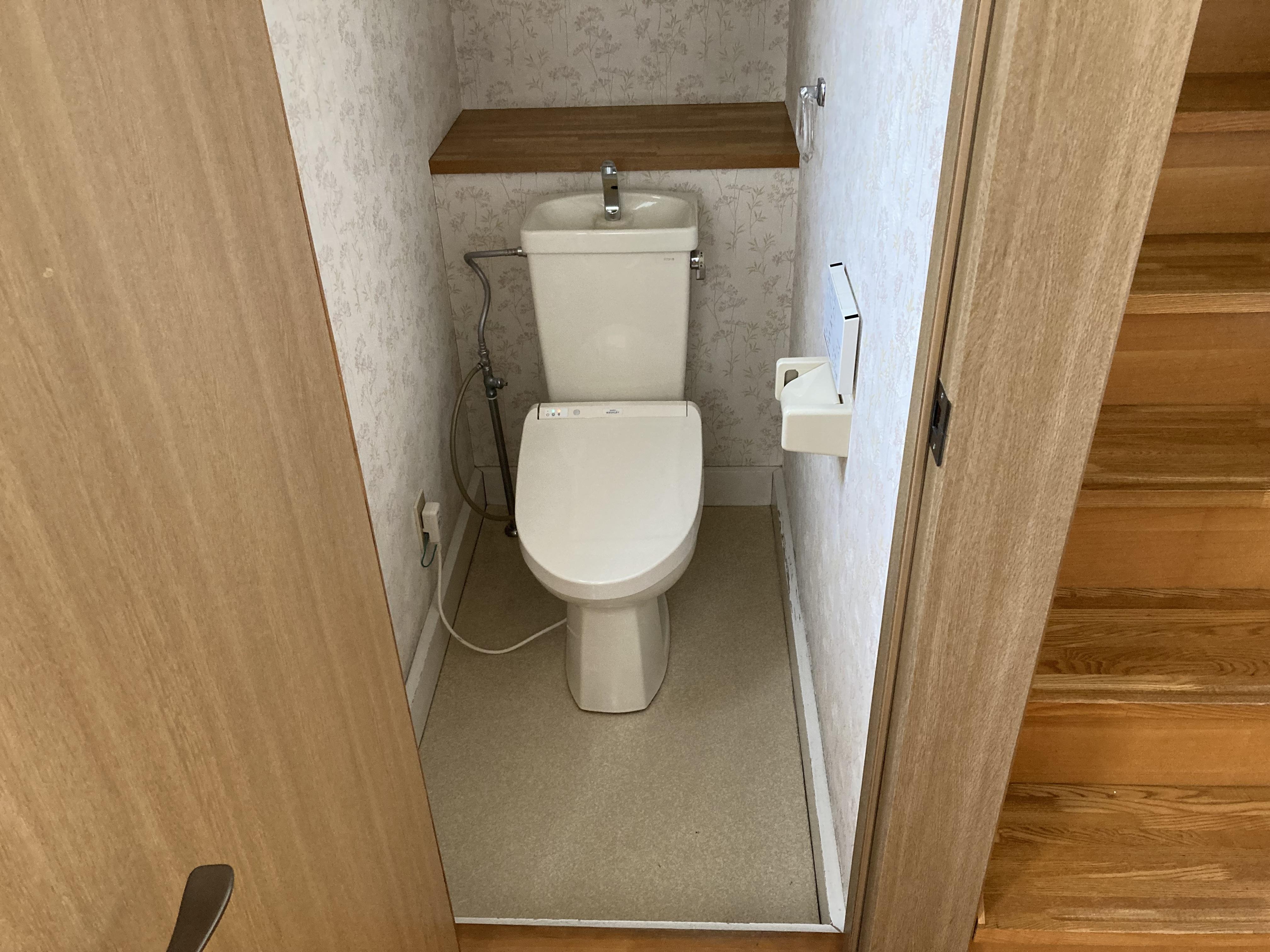 トイレリノベーションしました。 カウンターはダイノック貼りました。 床はCFからフロアタイルに変更です。 トイレはリクシルサティスSです。 ありがとうございました。