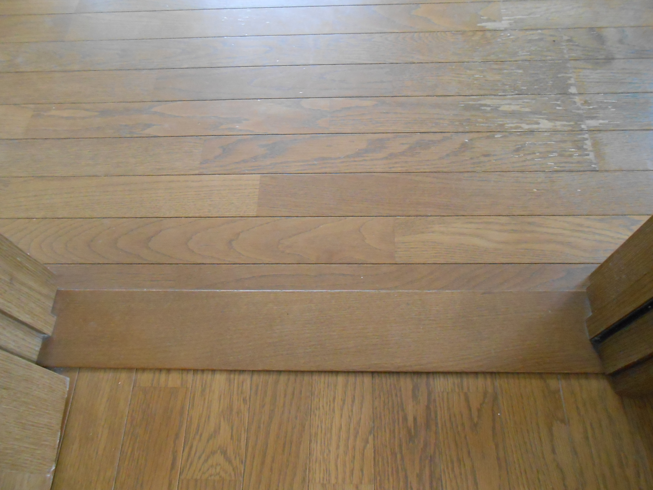 これまでのお家は、ドアの敷居が高くなっているので、床を重ねて貼っても逆に段差がなくなり問題ありませんでしたが、今回のお客様は築13年程でバリアフリー化されています。