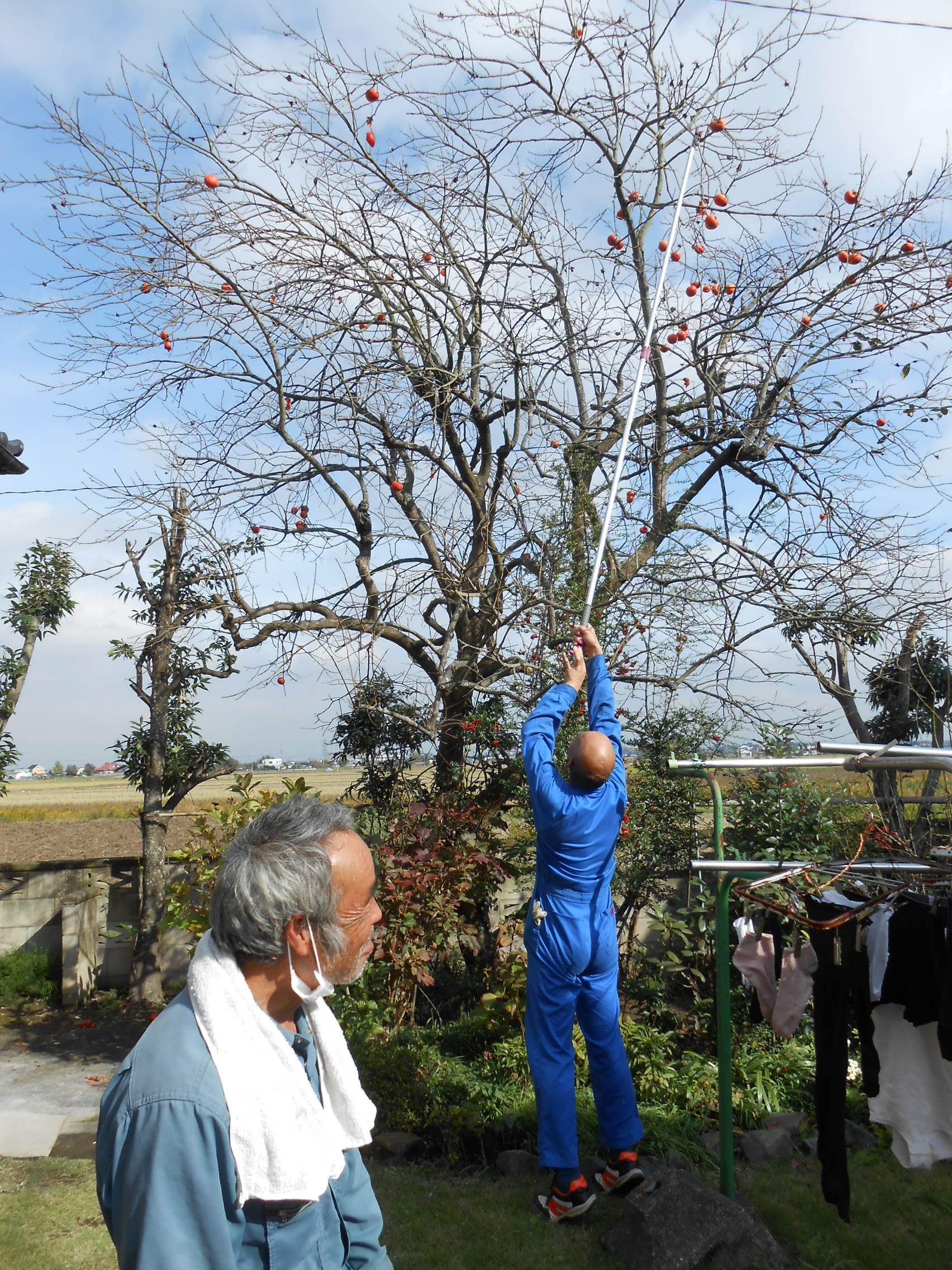 休憩時間のときに、甘いのがよければそこの柿でも取って食べくれーと言われたので、取ってみる事にしました。