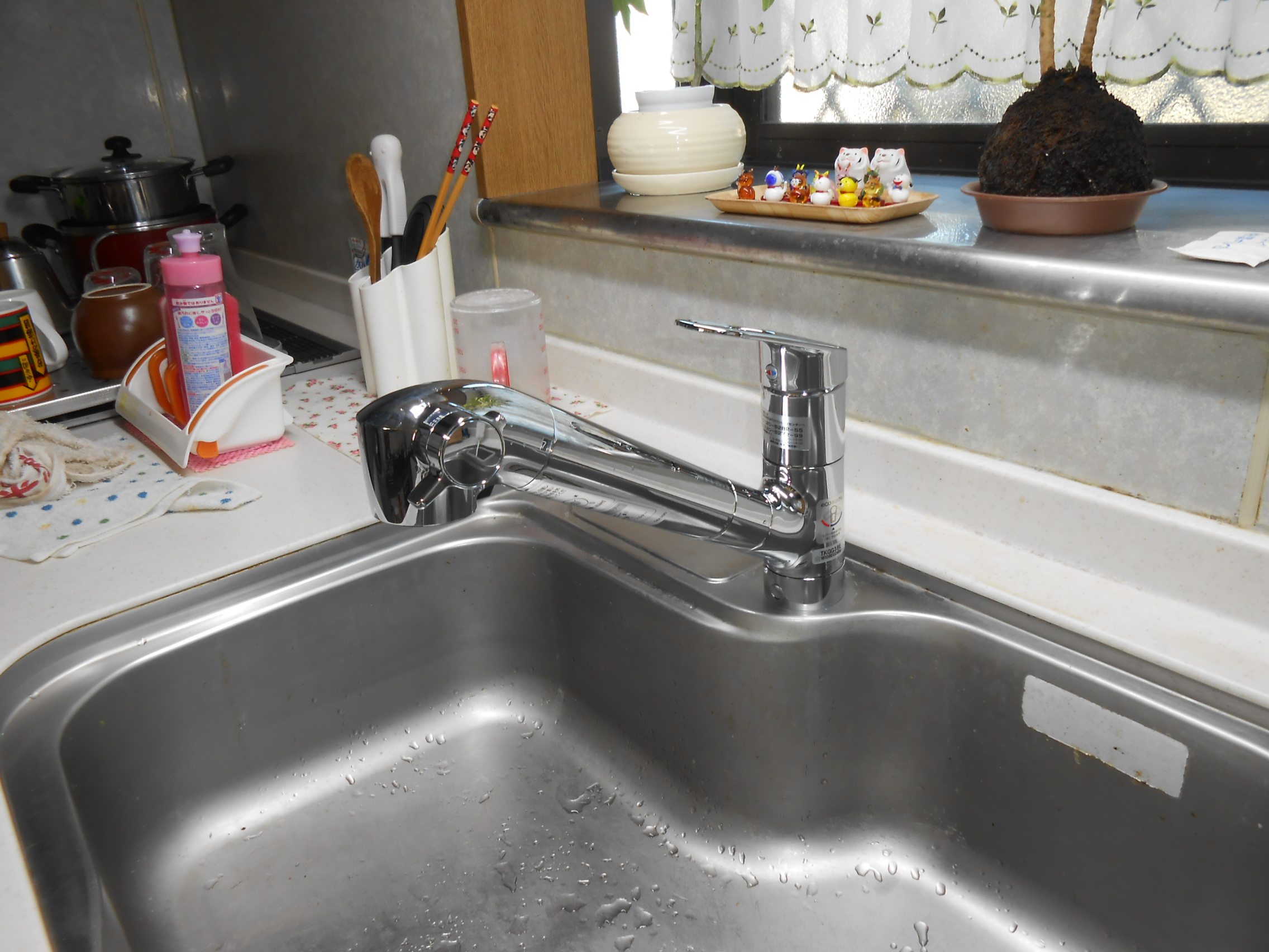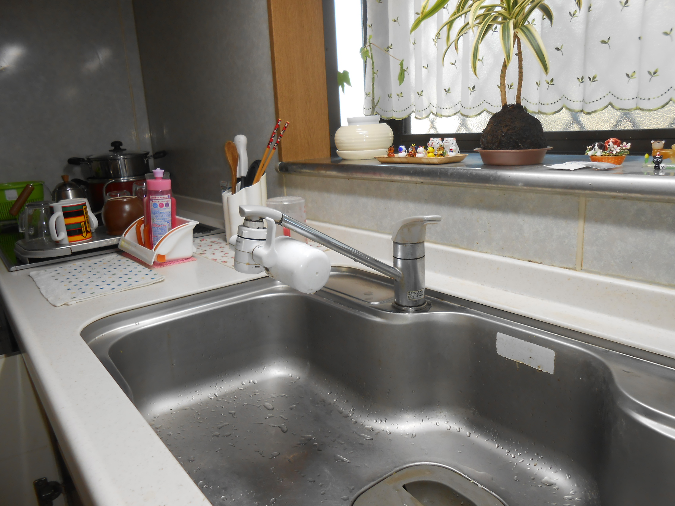 市販の浄水器をお客様が付けていましたが、接続箇所から水が漏れてしまうとのことなので、浄水カートリッジ内臓タイプに交換しました。