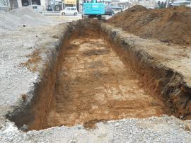 本日から始まった工事は、広い土地の雨水処理をするために、敷地内に穴を堀り、雨を敷地内で浸透させる装置を作るという内容です。