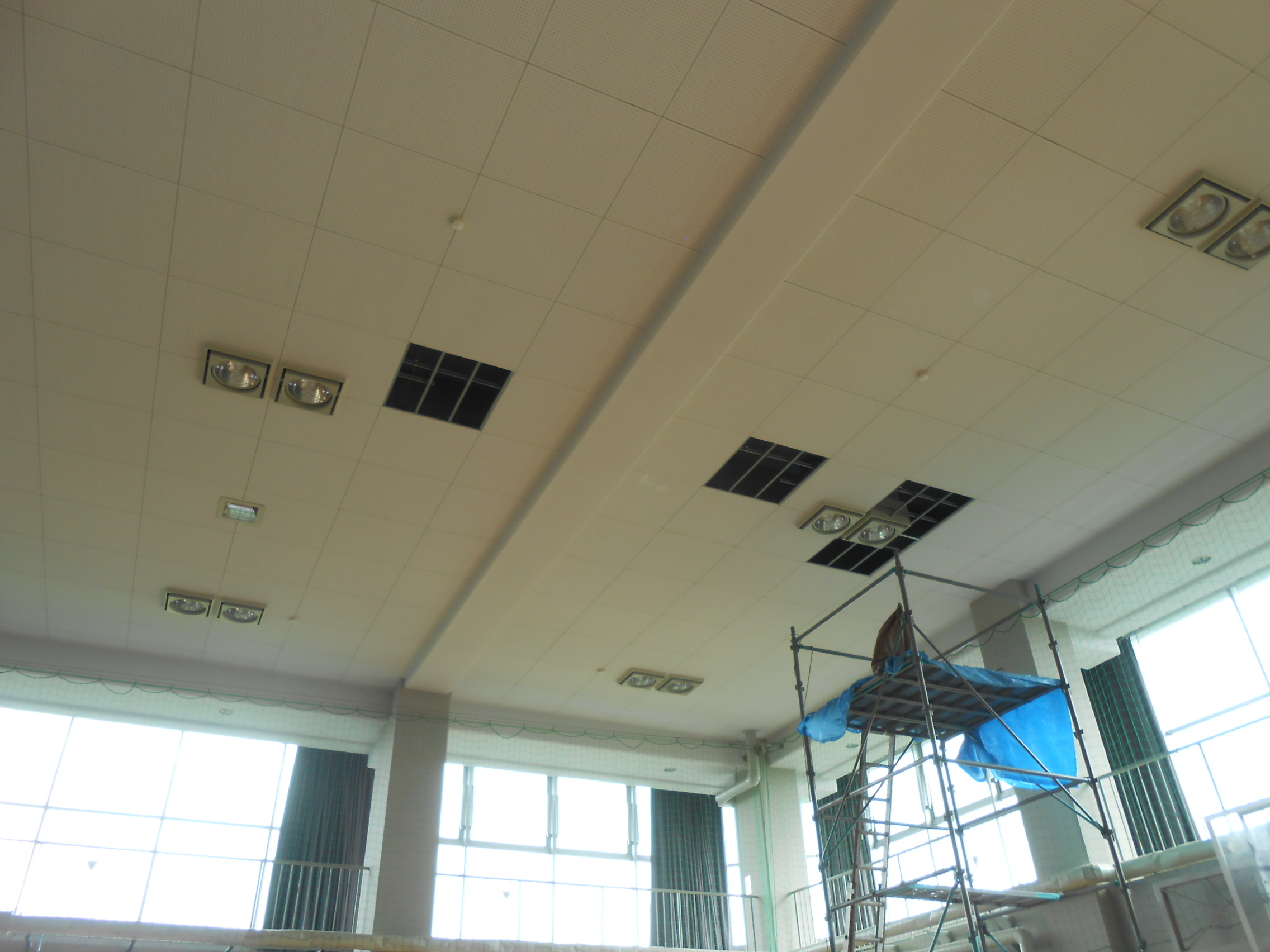 スポーツセンターの体育室の天井の張替えを頼まれました。