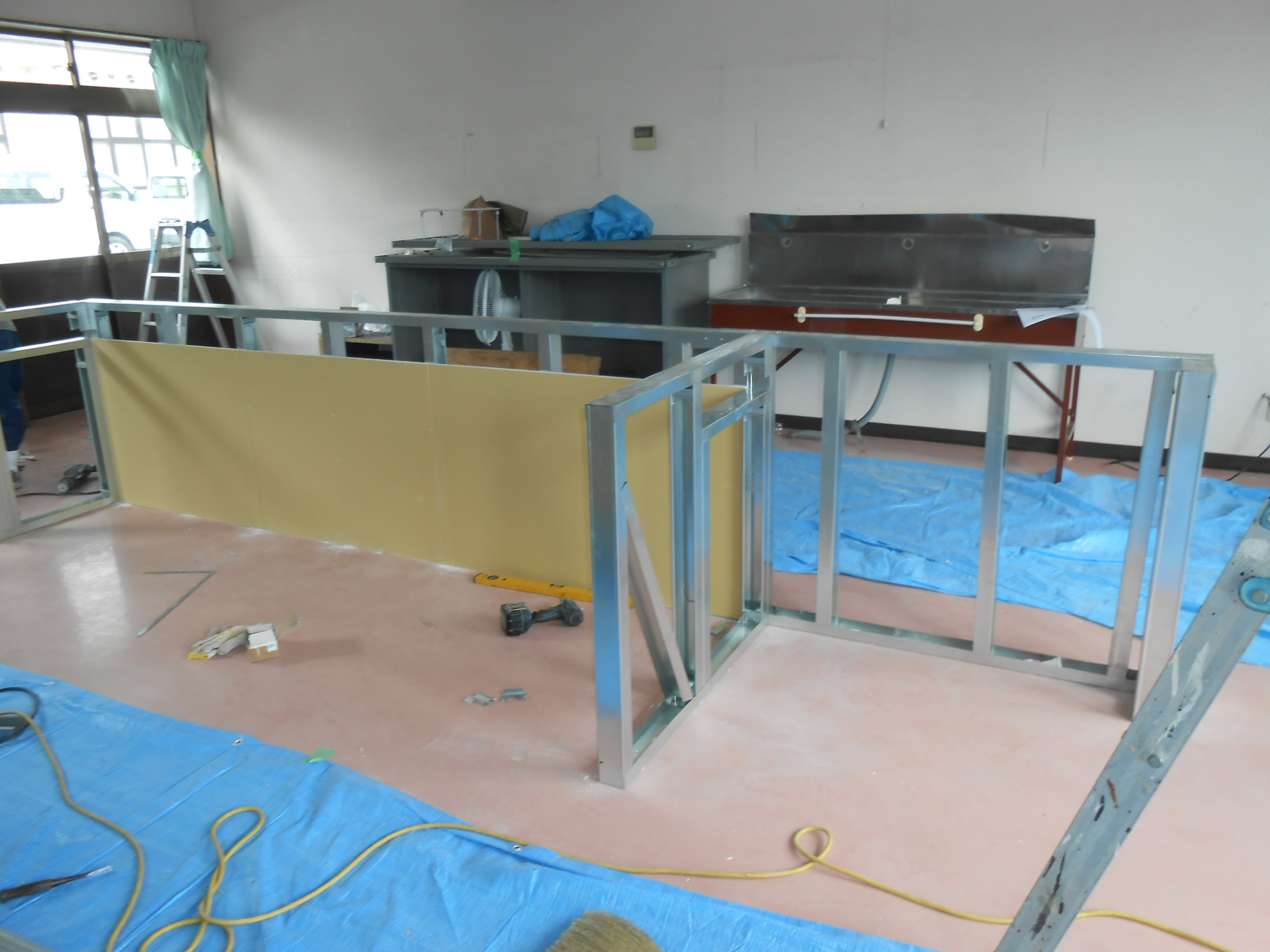 障害者福祉施設の訓練棟を改修し、室内に厨房を作りました。