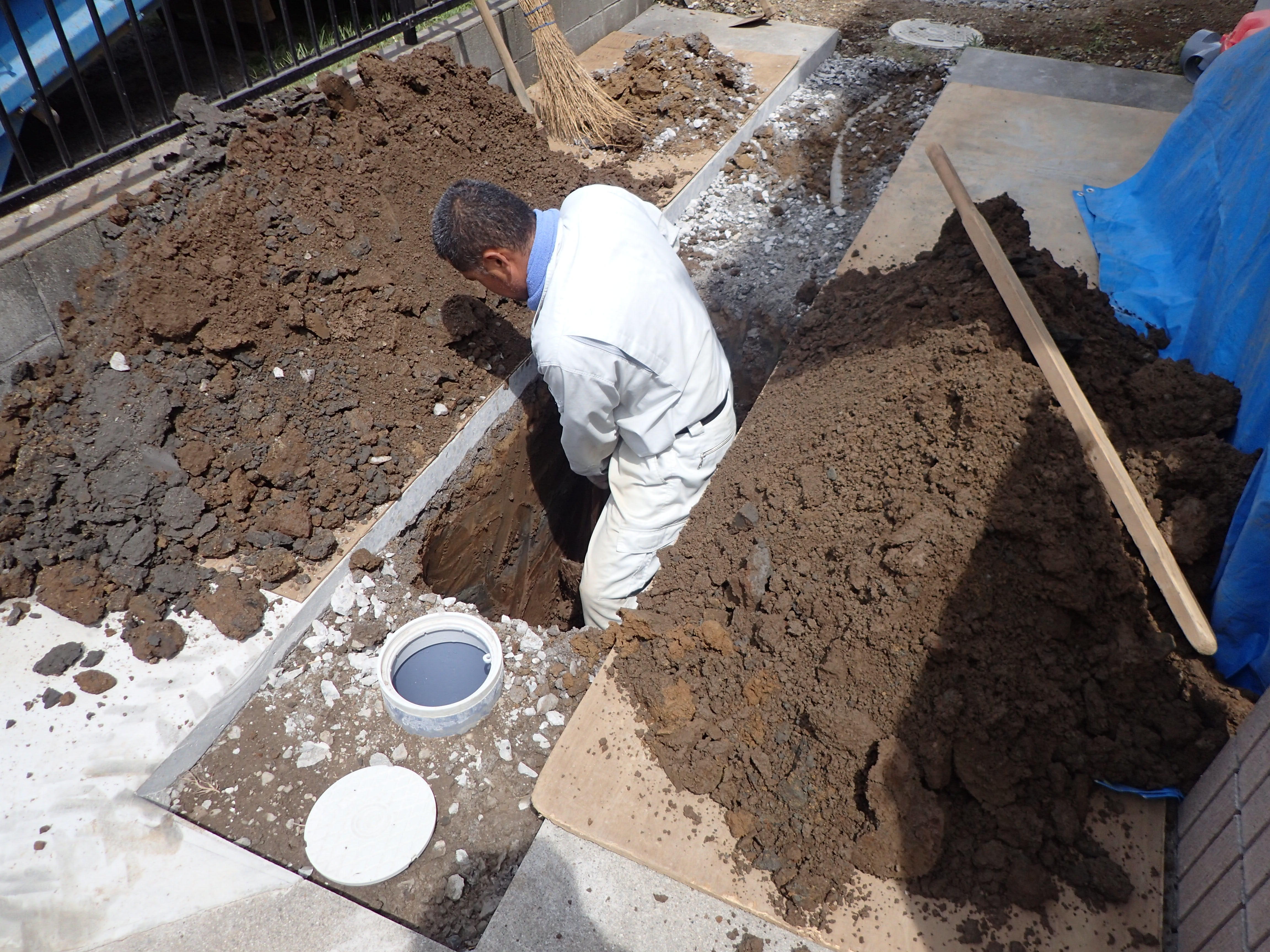 本下水に繋ぎなおすためには、地面を掘らないといけません。