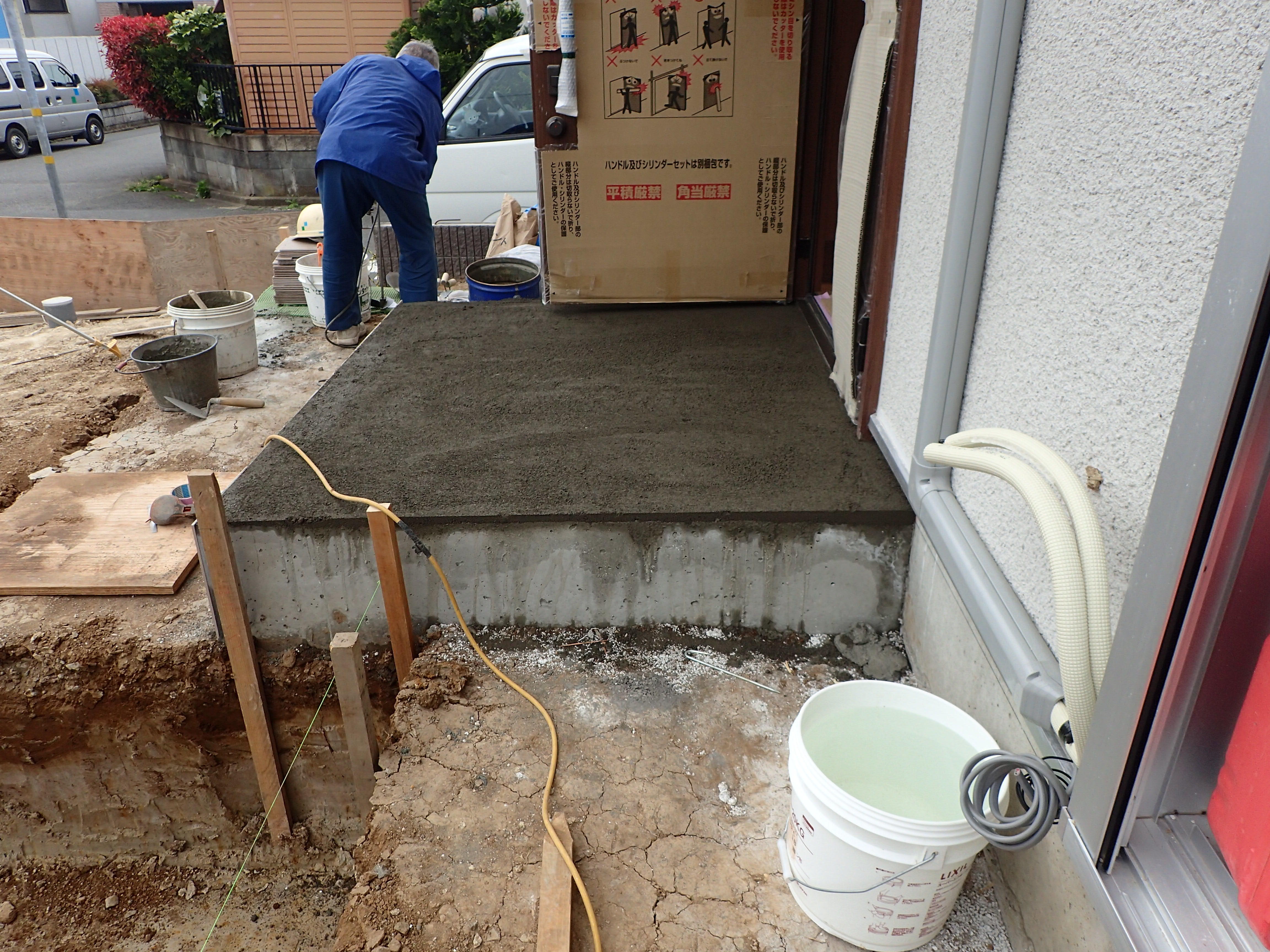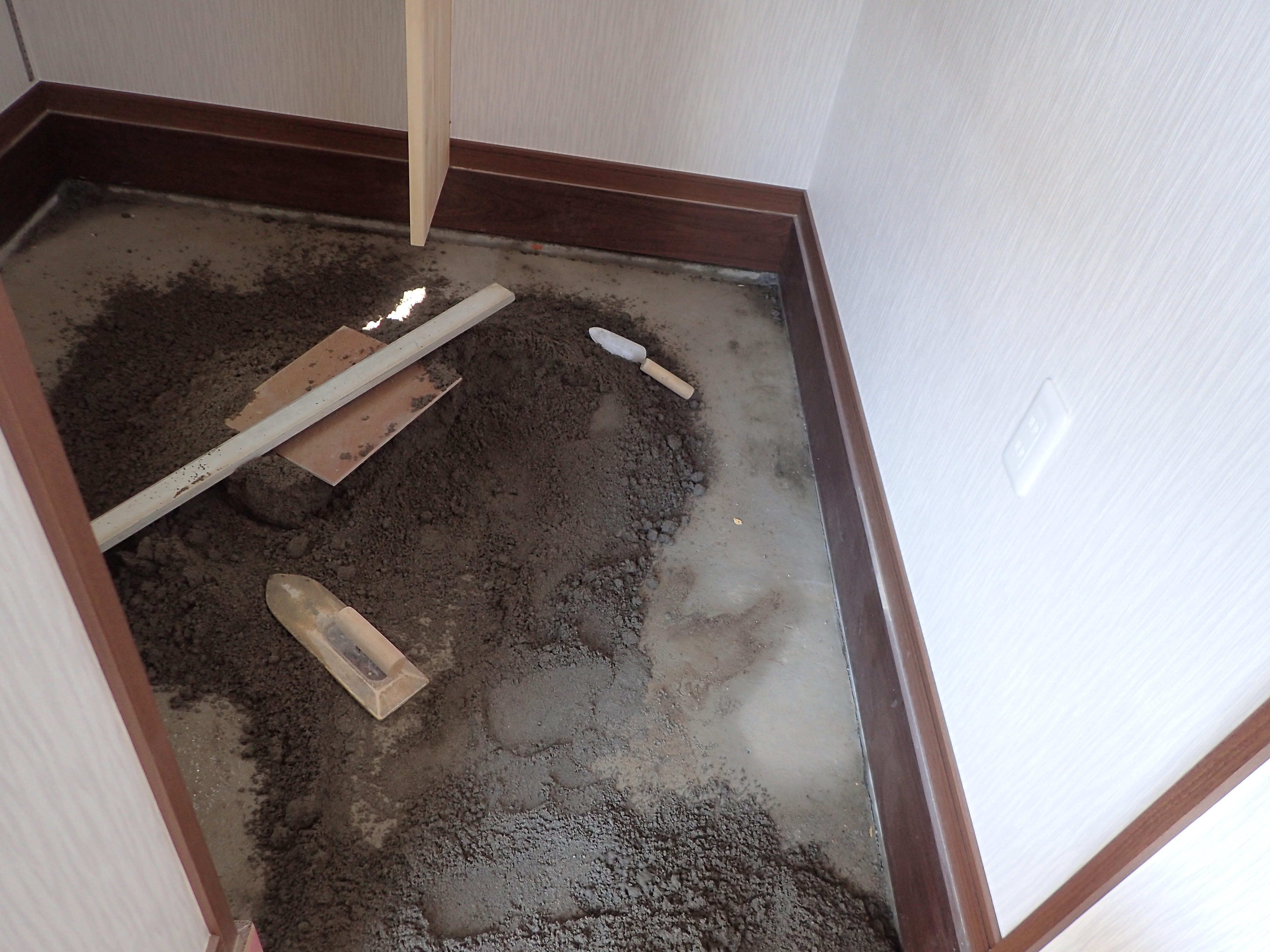 タイルを貼るにしても、雨が降っても流れるように勾配を下地で作ります。