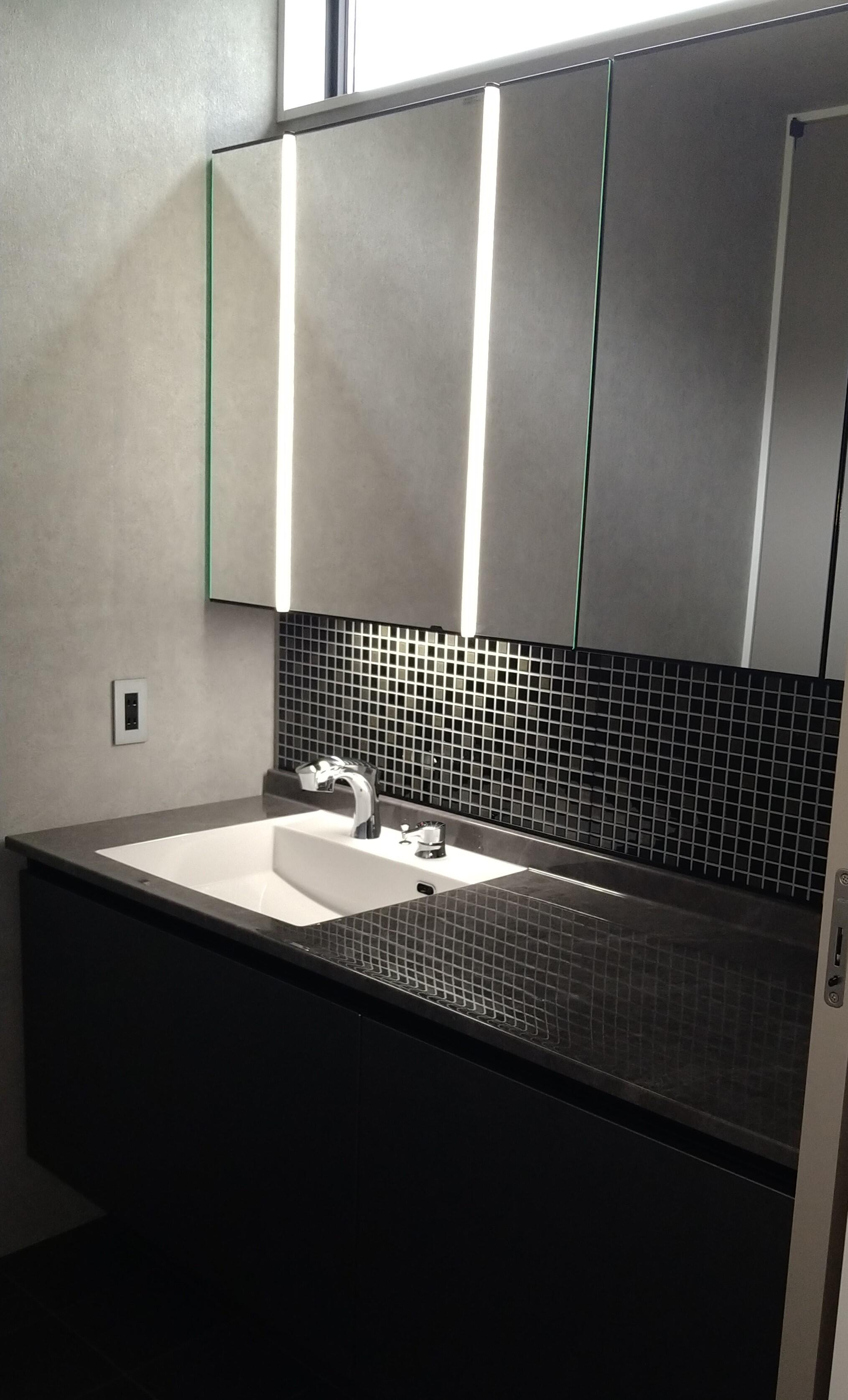 外壁や扉の色だけでなく、浴室や洗面台、壁紙まで黒やグレーが多いようです。その少し前はグレージュ系の白からグレーの間の明るめの色が流行っていました。さらにその前の5~10年前は白い床に濃色の建具が流行っていました。その前は木目・・・。