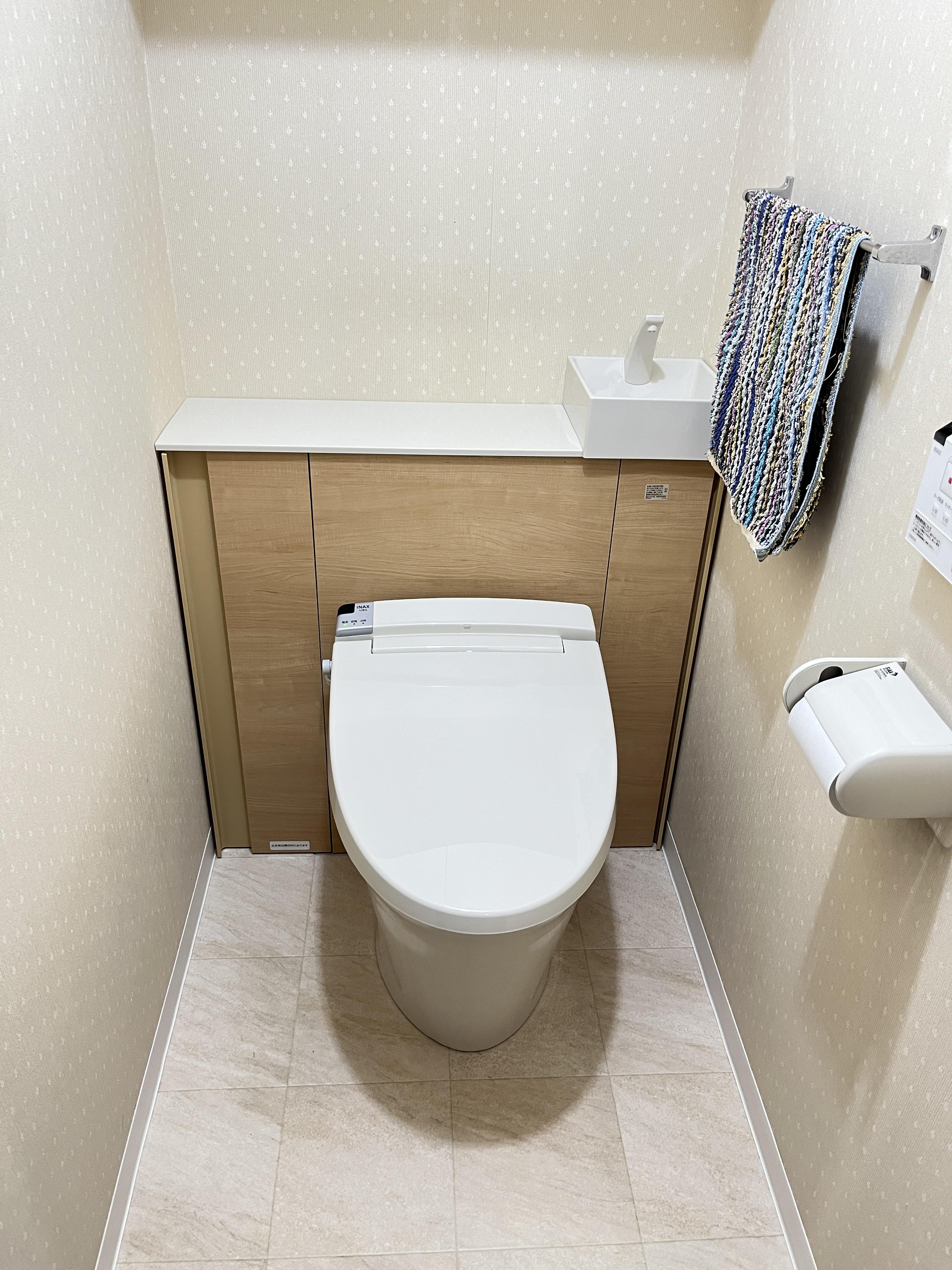 こちらはキャビネット付のトイレで、見た目がすっきりしたLIXILのリフォレをお勧めしました。