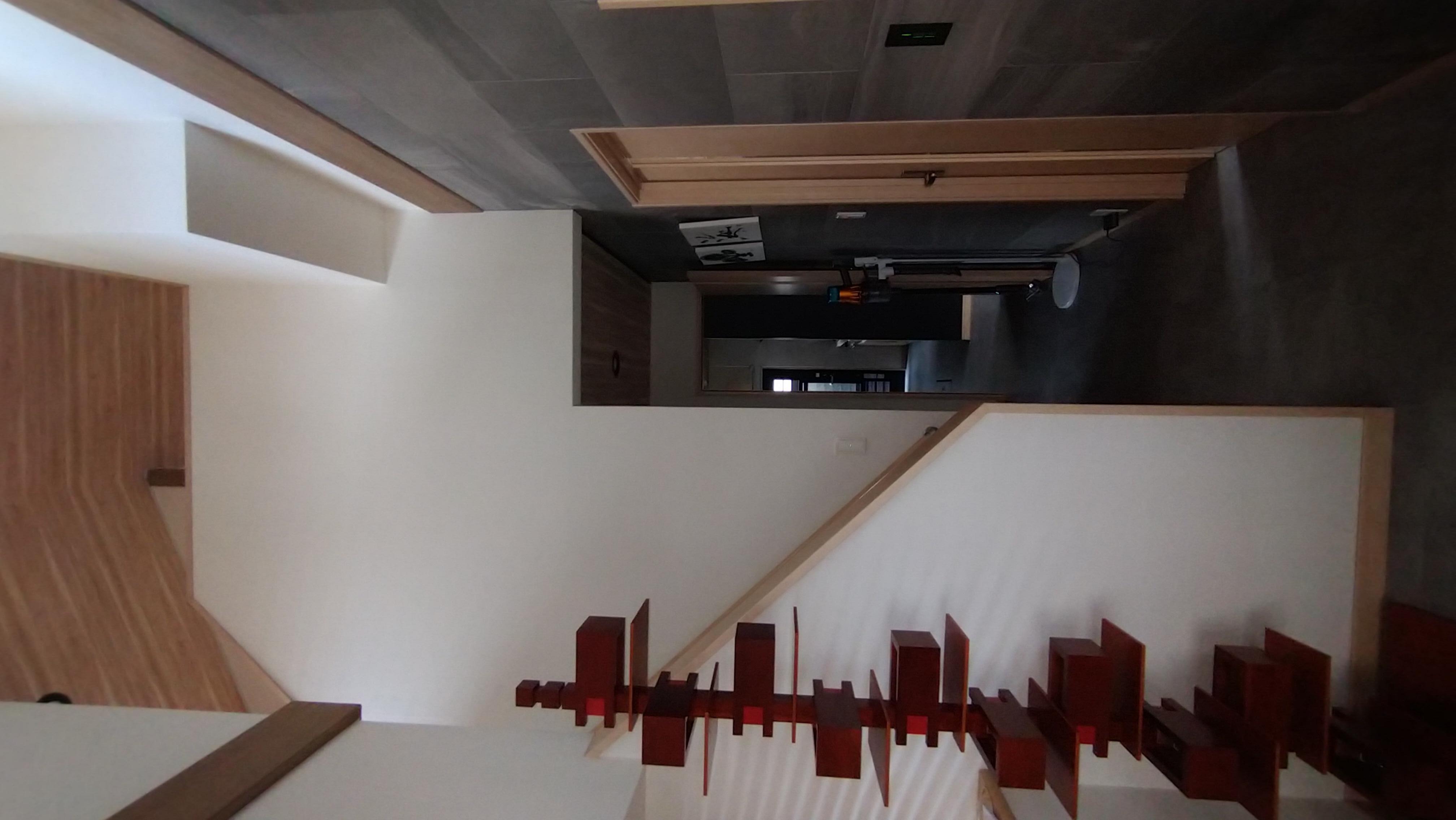 吹抜を利用し、ライン御強調されたタイルを縦に貼ることで、高さをいかしたおしゃれな空間を演出することができました。