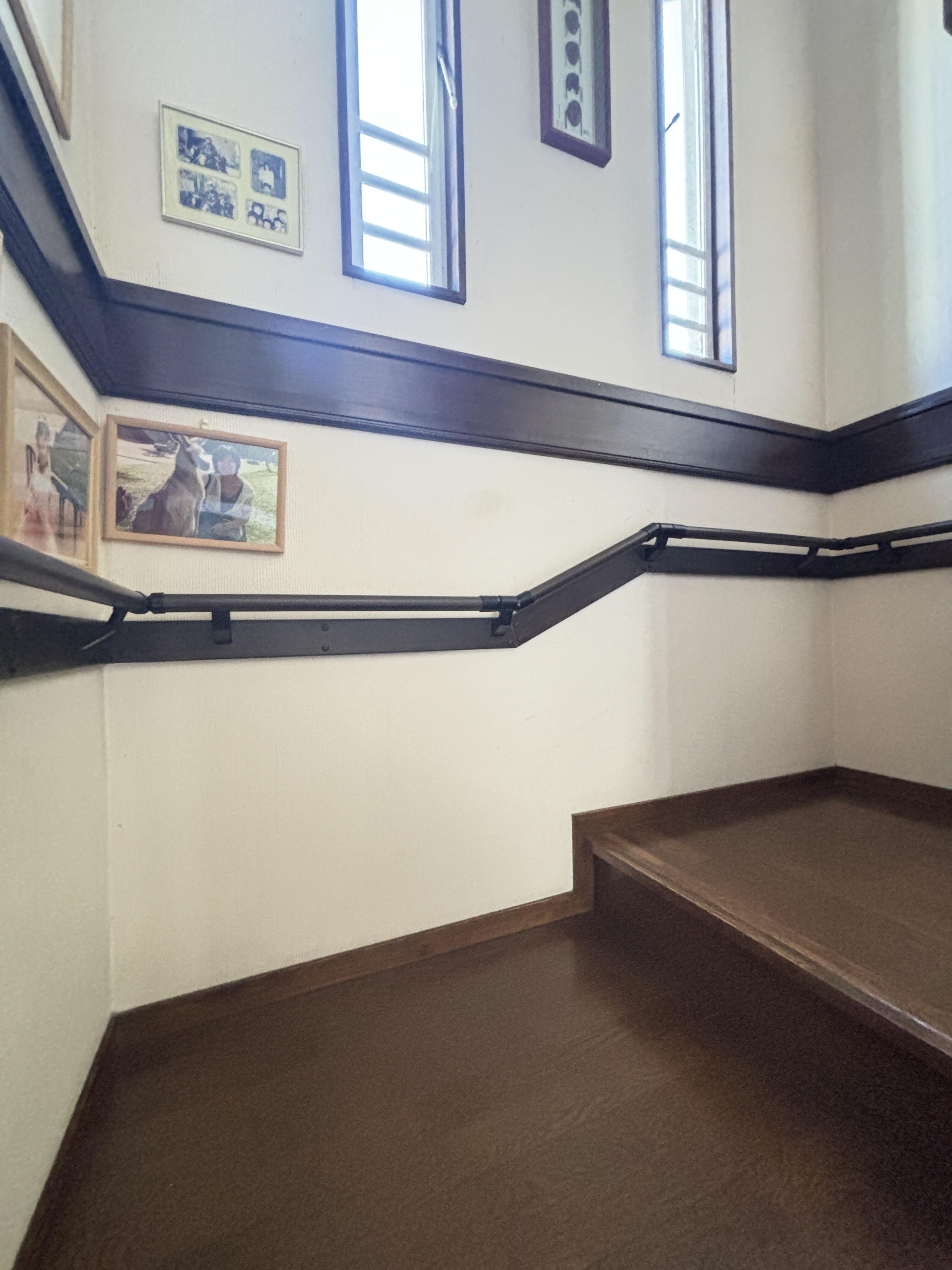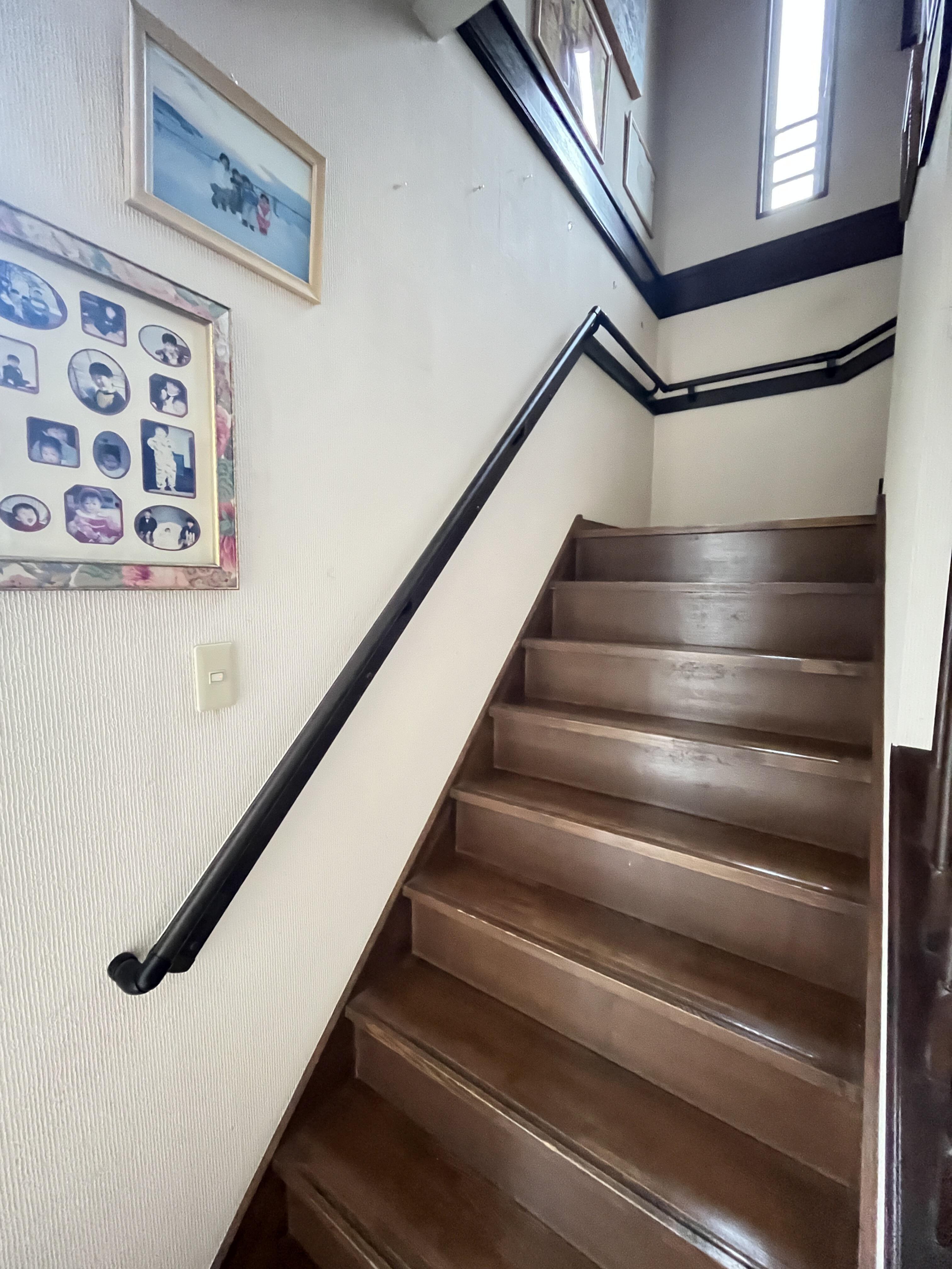 ご高齢のお母様がいらっしゃる際、手すりが必要になってしまったので取付をしてほしいとご相談をいただいたので、 階段のイメージに近い手すりを提案致しました。