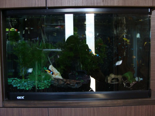 とてもキレイなグッピーなどの熱帯魚を飼育されていらっしゃる 水槽をカメラでパチリ!!