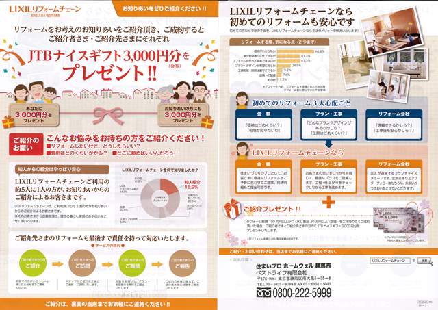 ※リフォーム総額100万以上かつLIXIL製品30万以上(定価)をご採用のうえでご成約頂いた場合