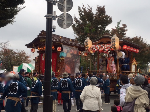 東村山市内にある神社の6台の山車、神輿と大太鼓のパレードが
