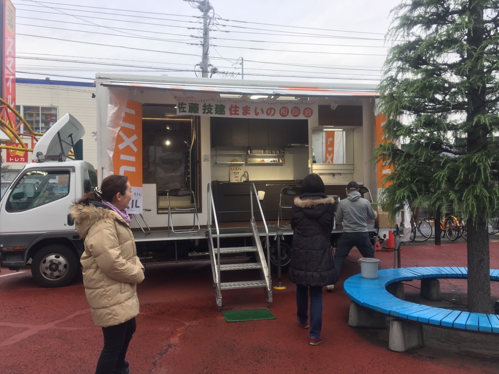 本日の”いーすとびれっじ”での「移動展示車相談会」は悪天候のため