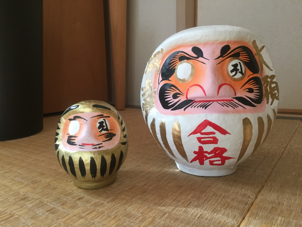 上の子は「合格だるま」下の子は「金運アップだるま」