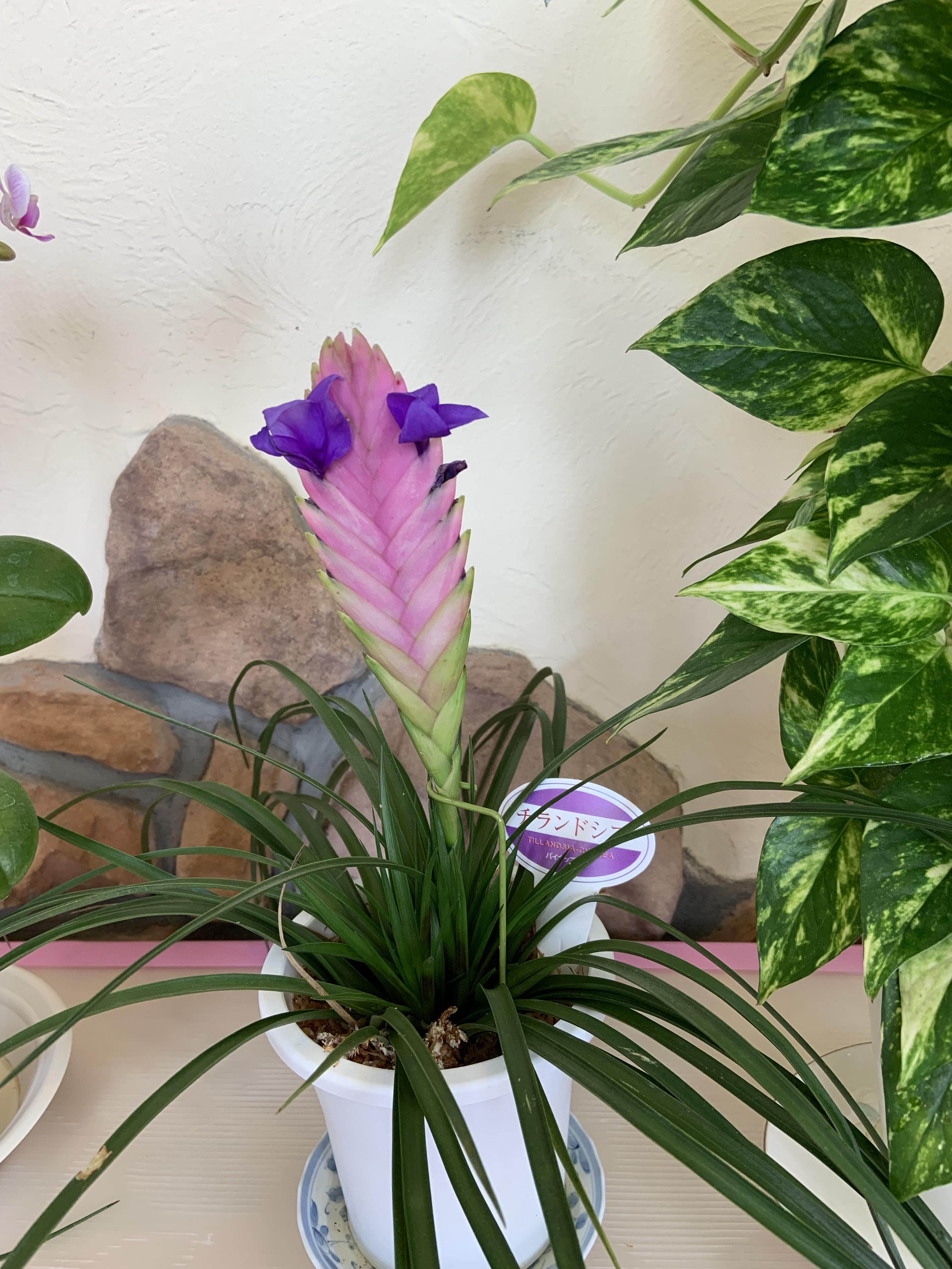 お花屋が好きなスタッフが、「チランドシア」というお花?観葉グリーン?をお花屋さんで見つけてきました!最初は紫の花は咲いてなく、ポコポコッと花が増えて可愛いです!