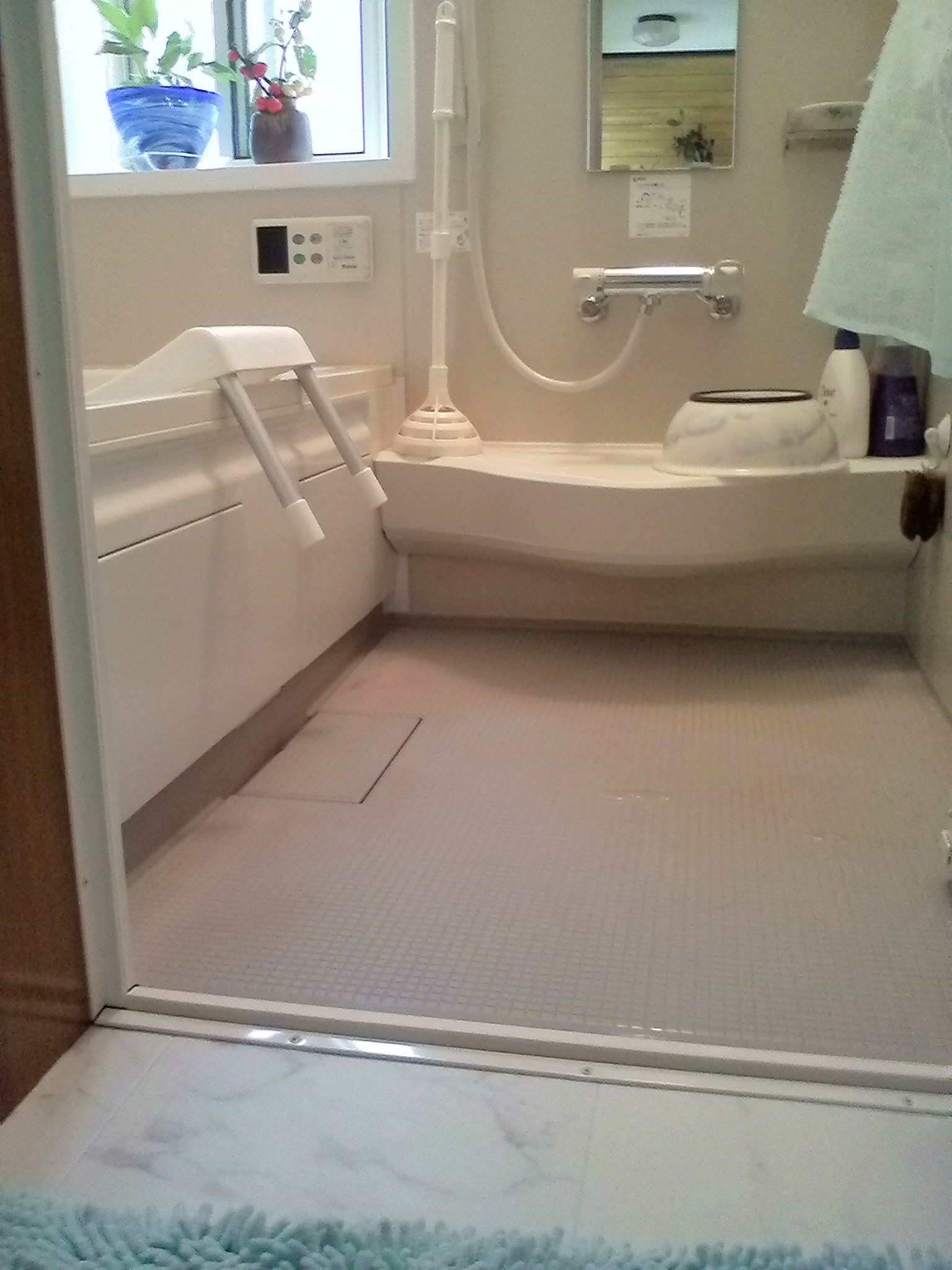 以前タイル貼りのお風呂でしたが、暖かく、きれいなユニットバスにしました。窓にもペアガラスを入れ、保温性を高めました。