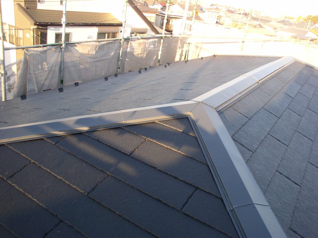 かなり傷んでいた、瓦の屋根を軽いコロニアルに変得ました。。