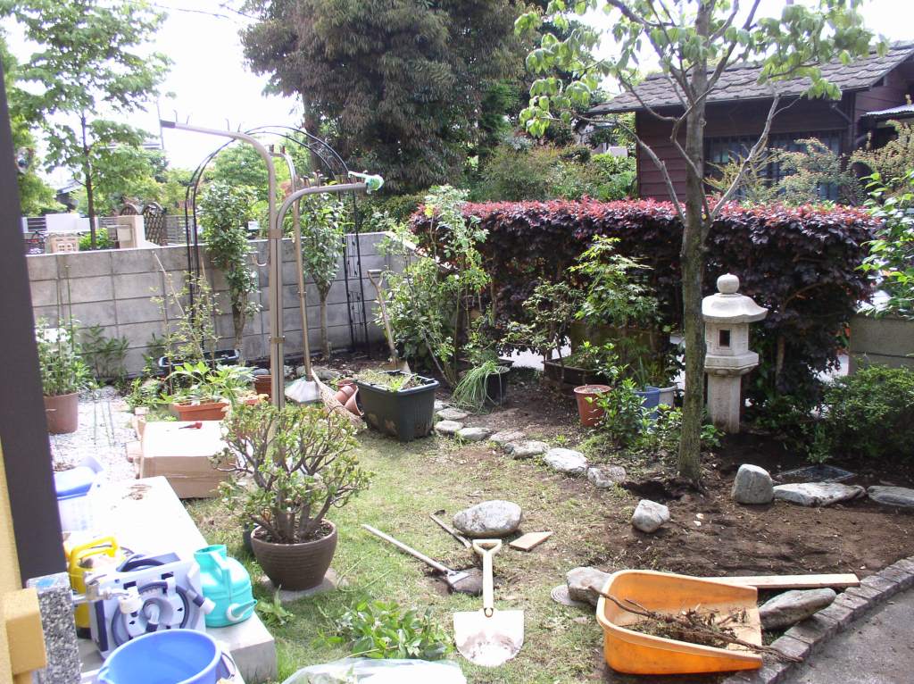 雨が降ってもドロドロにならないようにモルタルを打ってみました。真ん中の部分は、水はけが良いように芝を残してみました。