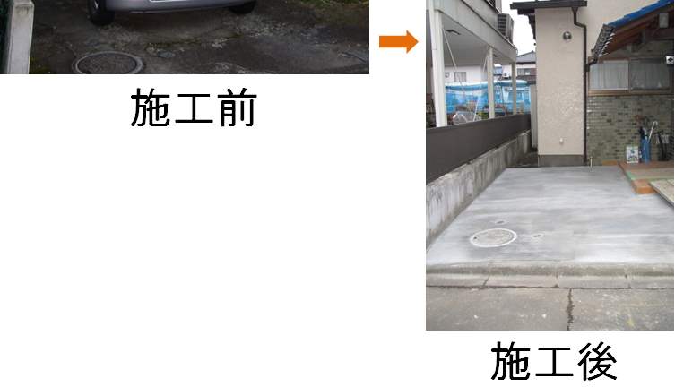 砕けて粉々になっていた駐車場のコンクリートを打ち直しました。