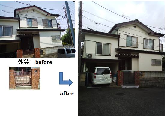 外装の吹付塗装をしました。門扉も新しく取り替えました。