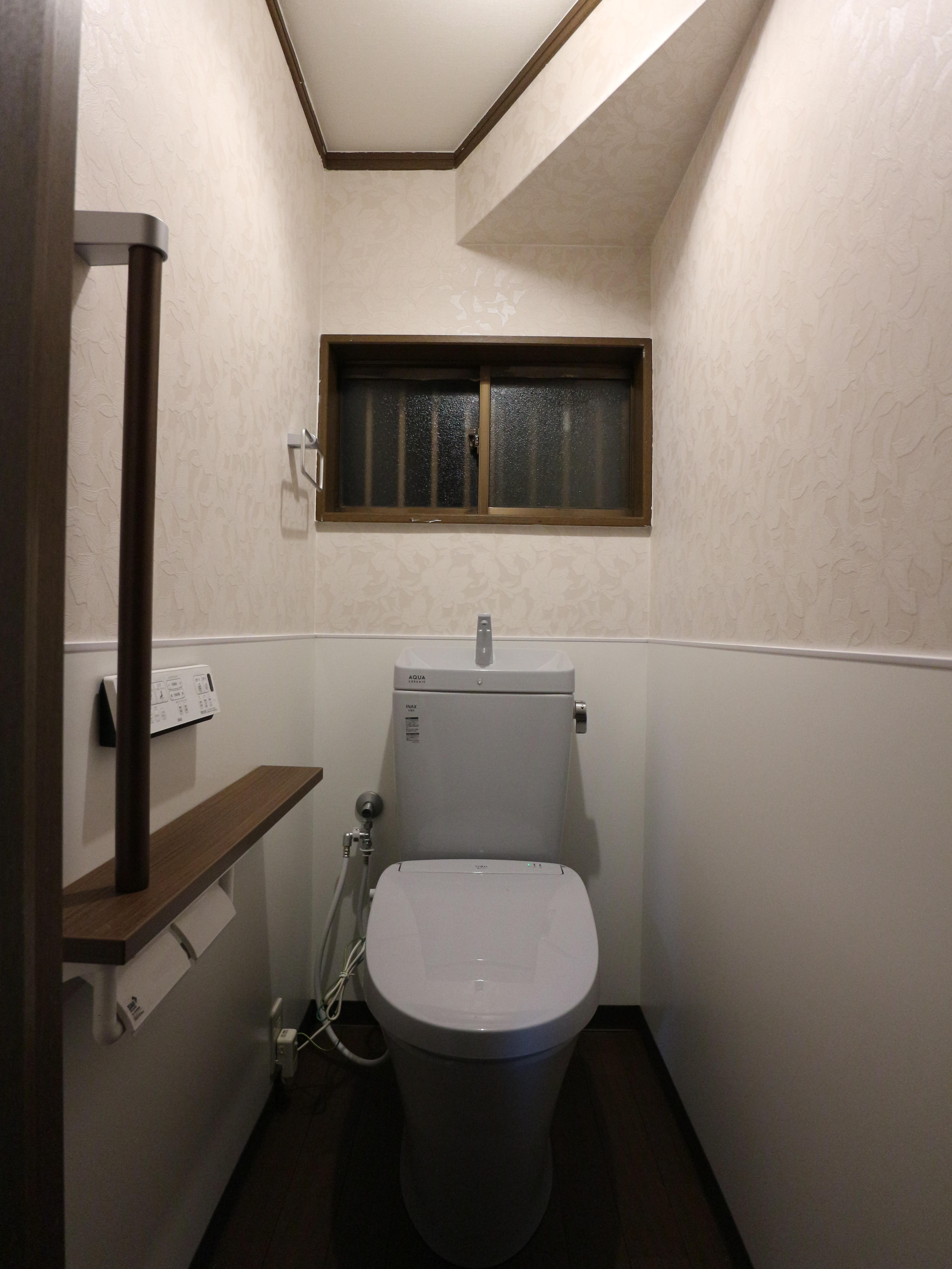 トイレの壁半分をパネル貼りに仕上げました。 クロス工事よりも金額がアップしますが、お掃除はかなり楽になったとの事。 壁の汚れが気になる方はぜひご相談下さい。
