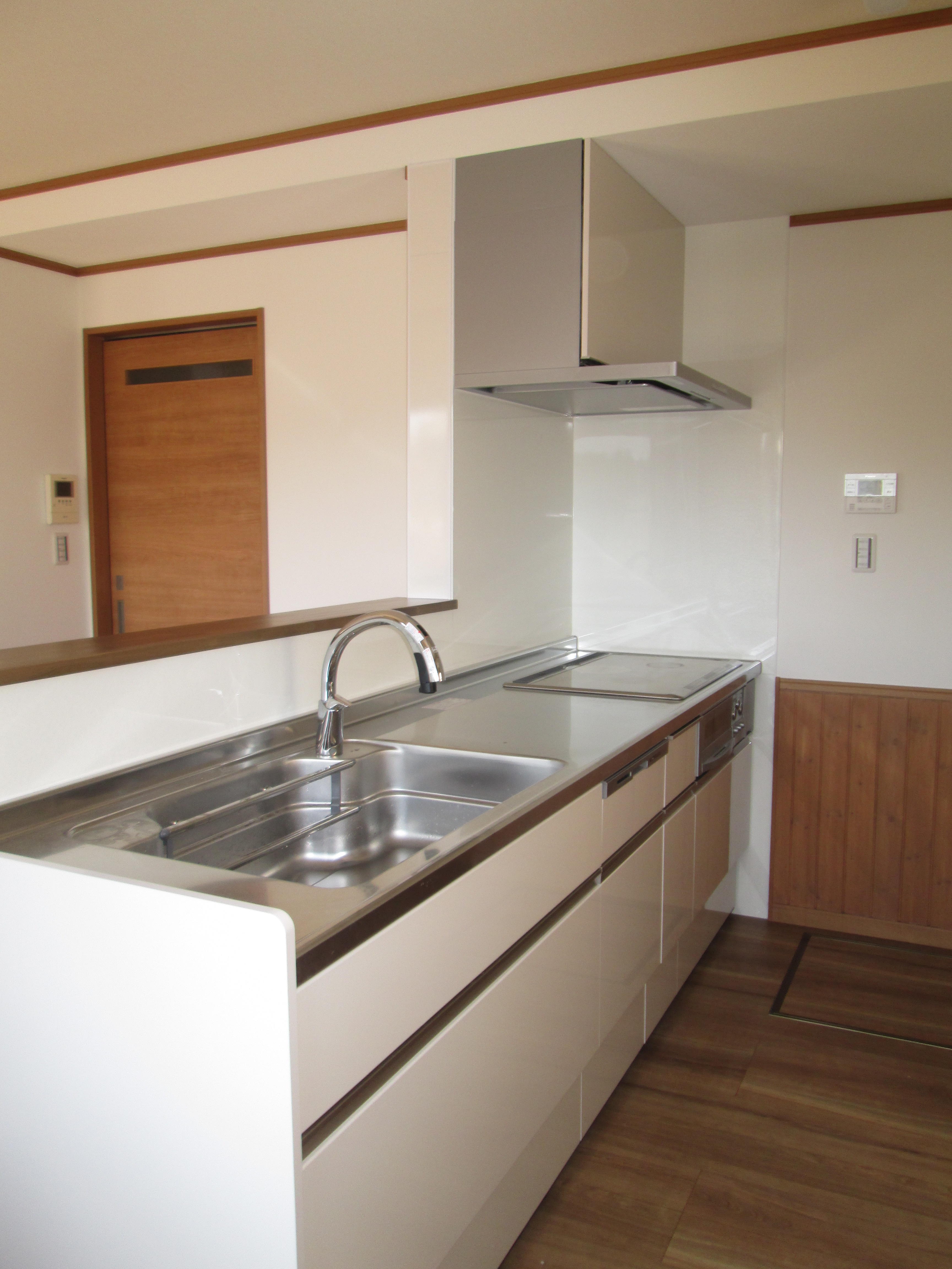 間取りも少し変えて、対面キッチンへとリフォームしました。IHヒーターとタッチレス水栓などの機器で充実のシステムキッチンになりました。